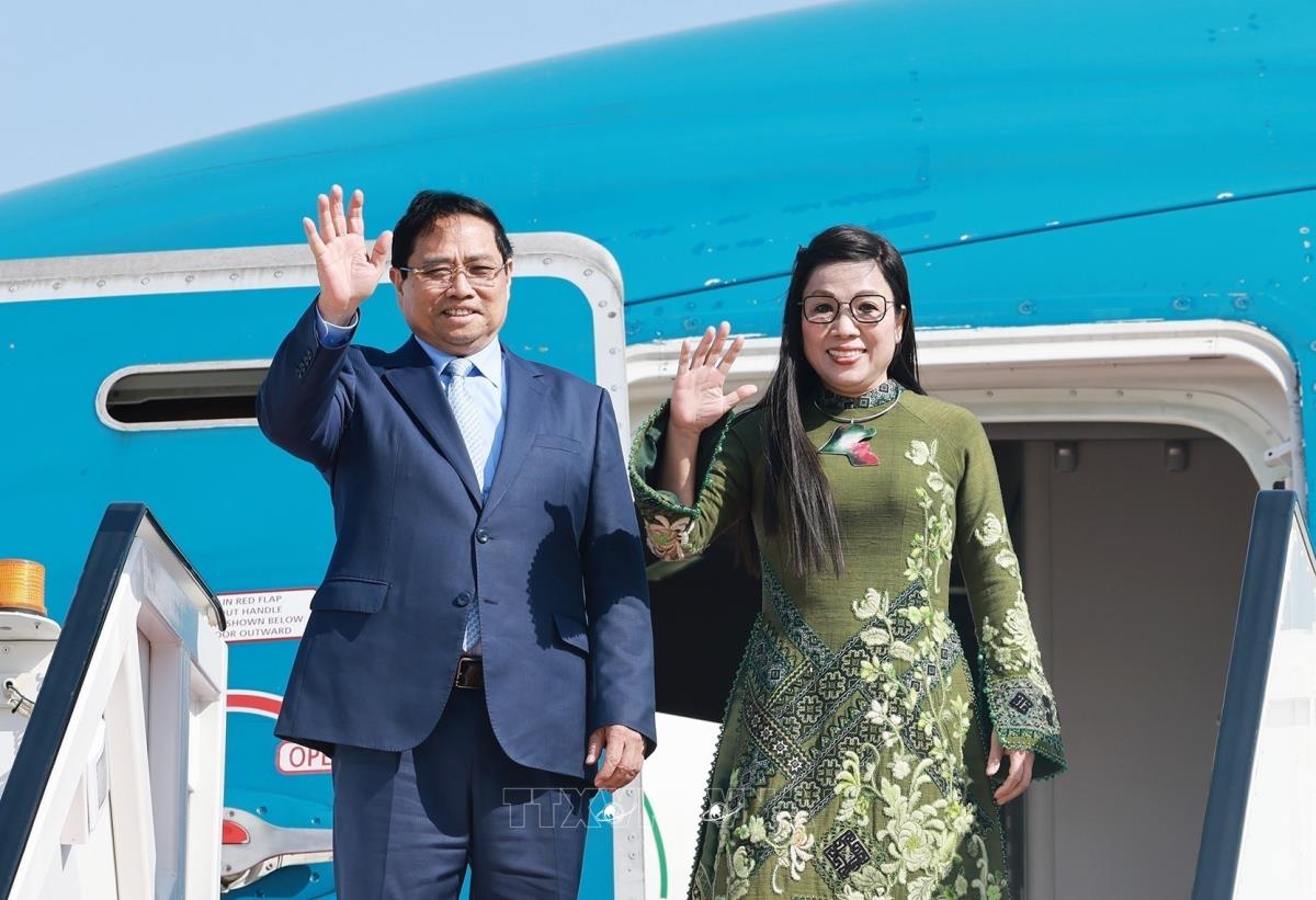 Thủ tướng Phạm Minh Chính và Phu nhân Lê Thị Bích Trân rời Kuwait, tiếp tục lên đường thăm chính thức Algeria (18/11/2025). Ảnh: Dương Giang-TTXVN