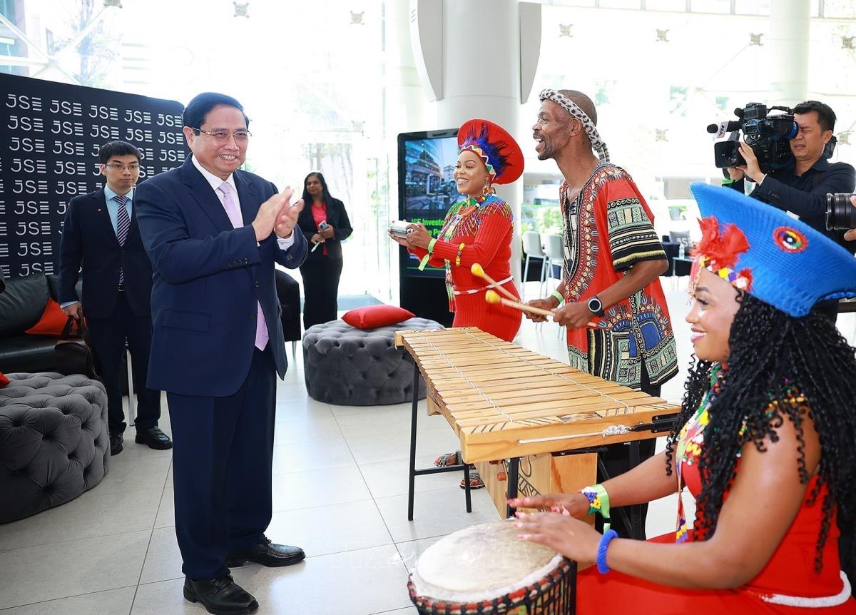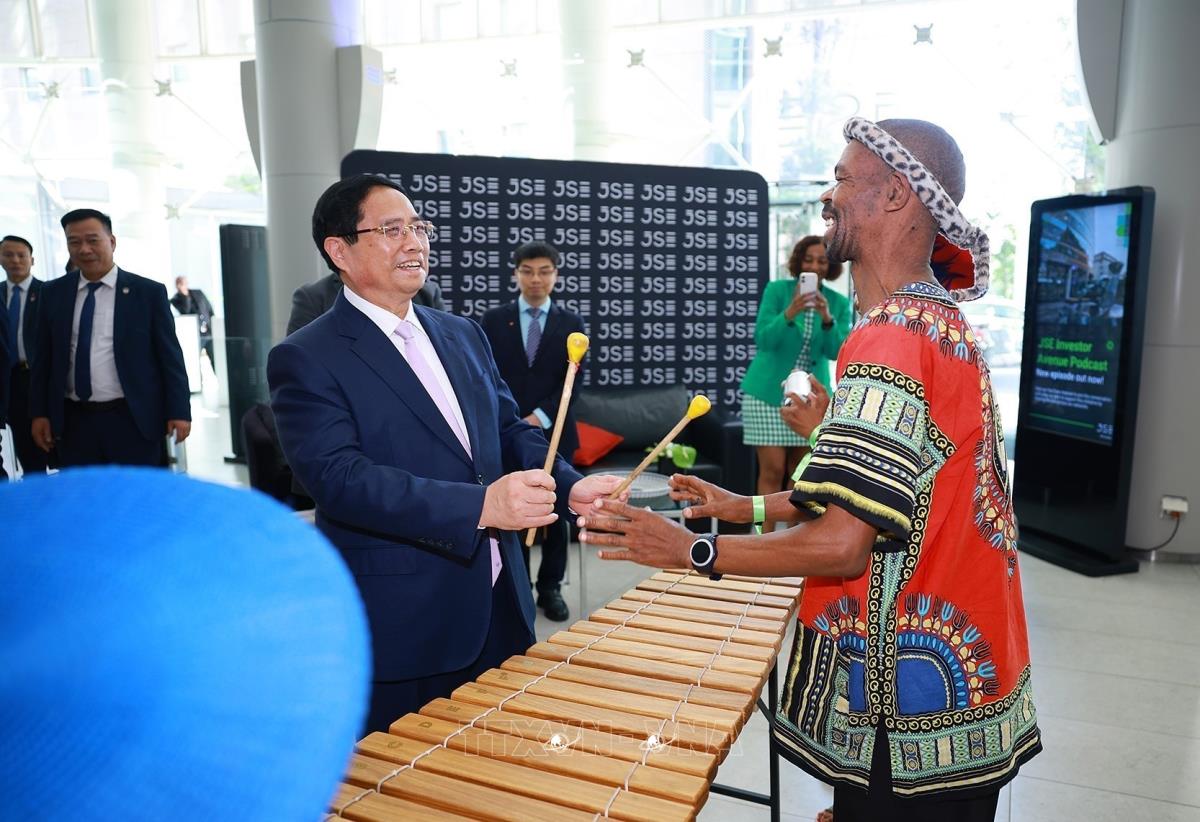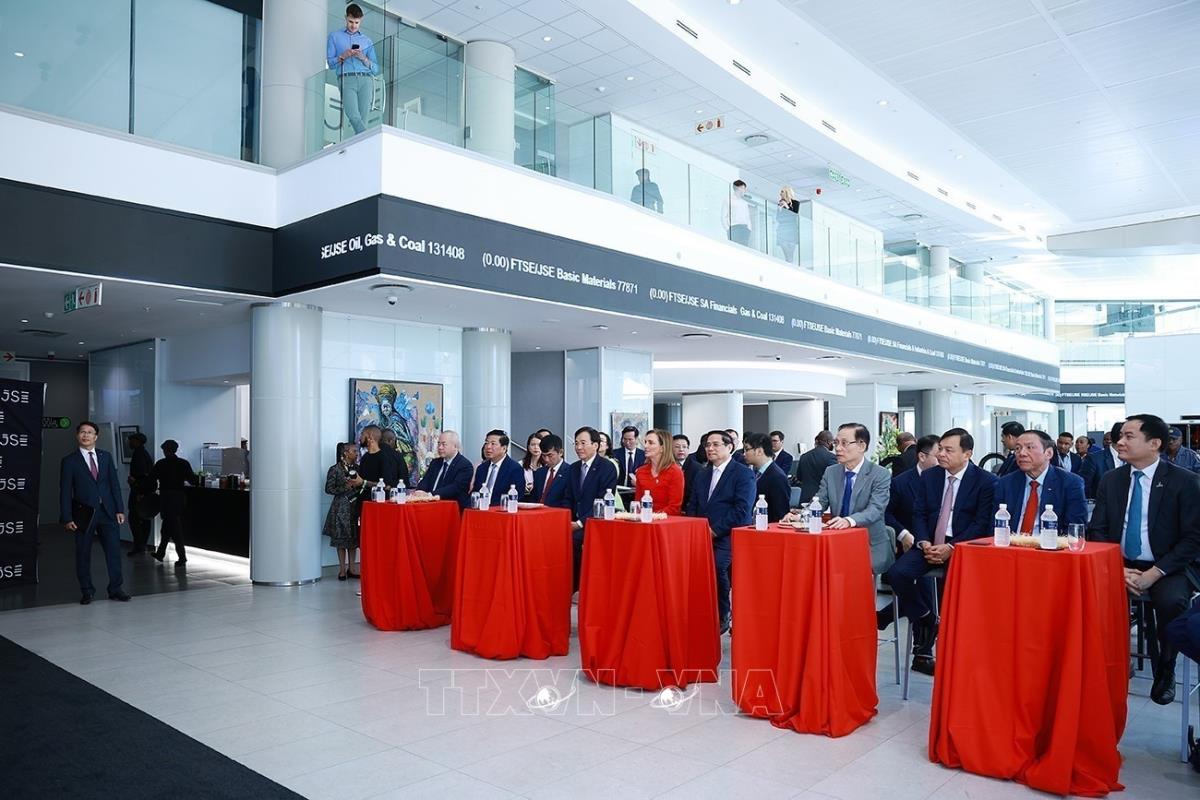Thủ tướng Phạm Minh Chính thăm và khai trương phiên giao dịch tại Thị trường Chứng khoán Johannesburg (21/11/20250. Ảnh: Dương Giang-TTXVN