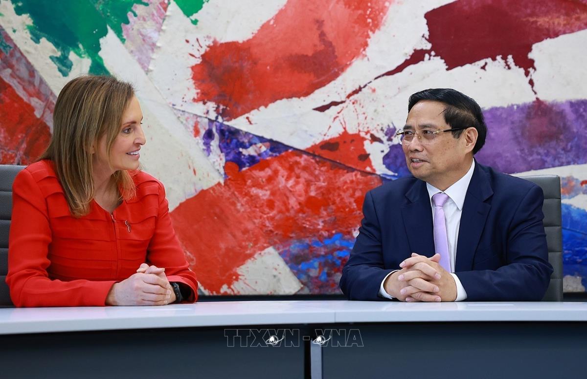 Thủ tướng Phạm Minh Chính gặp bà Leila Fourie, Giám đốc Thị trường Chứng khoán Johannesburg (21/11/2025). Ảnh: Dương Giang-TTXVN