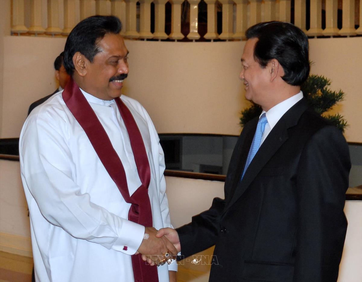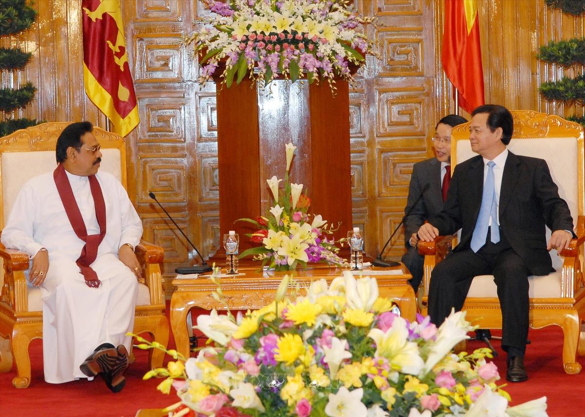 Thủ tướng Nguyễn Tấn Dũng tiếp ngài Ma-hin-đa Ra-gia-pắc-xơ, Tổng thống Cộng hoà Xã hội chủ nghĩa dân chủ Sri Lanka nhân chuyến thăm chính thức nước ta (22/10/2009). Ảnh : Nhan Sáng - TTXVN