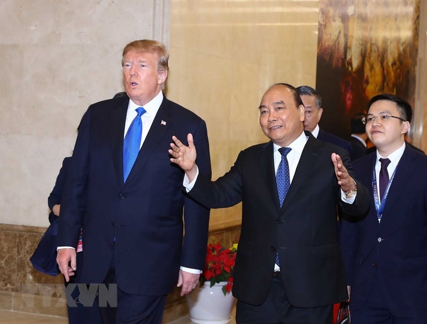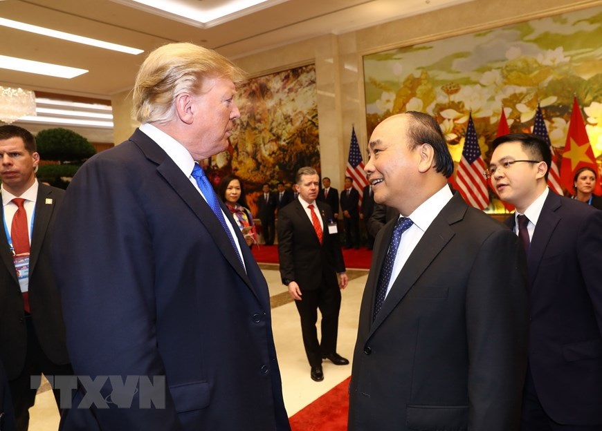 Hà Nội (TTXVN 27/2/2019) Sáng 27/2/2019, tại Trụ sở Chính phủ, Thủ tướng Nguyễn Xuân Phúc hội kiến Tổng thống Hoa Kỳ Donald Trump nhân dịp sang Việt Nam dự Hội nghị thượng đỉnh Hoa Kỳ-Triều Tiên lần thứ hai.