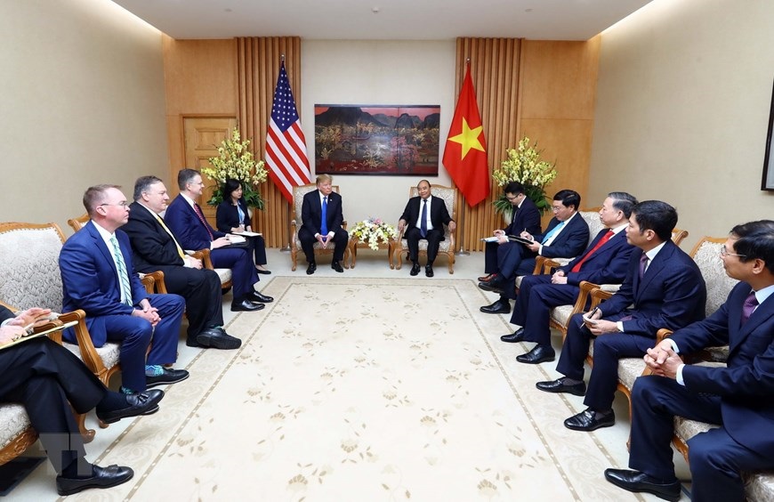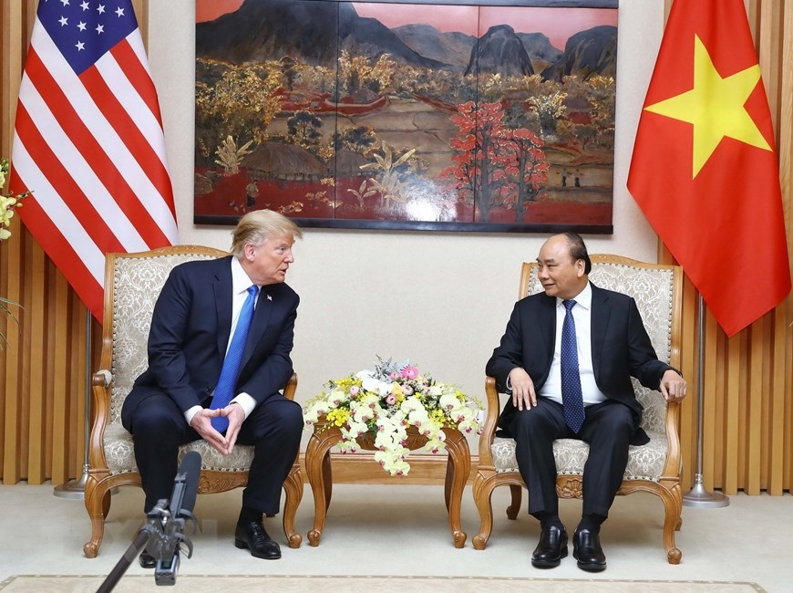 Thủ tướng Nguyễn Xuân Phúc hội kiến Tổng thống Hoa Kỳ Donald Trump. (Ảnh: Thống Nhất/TTXVN)