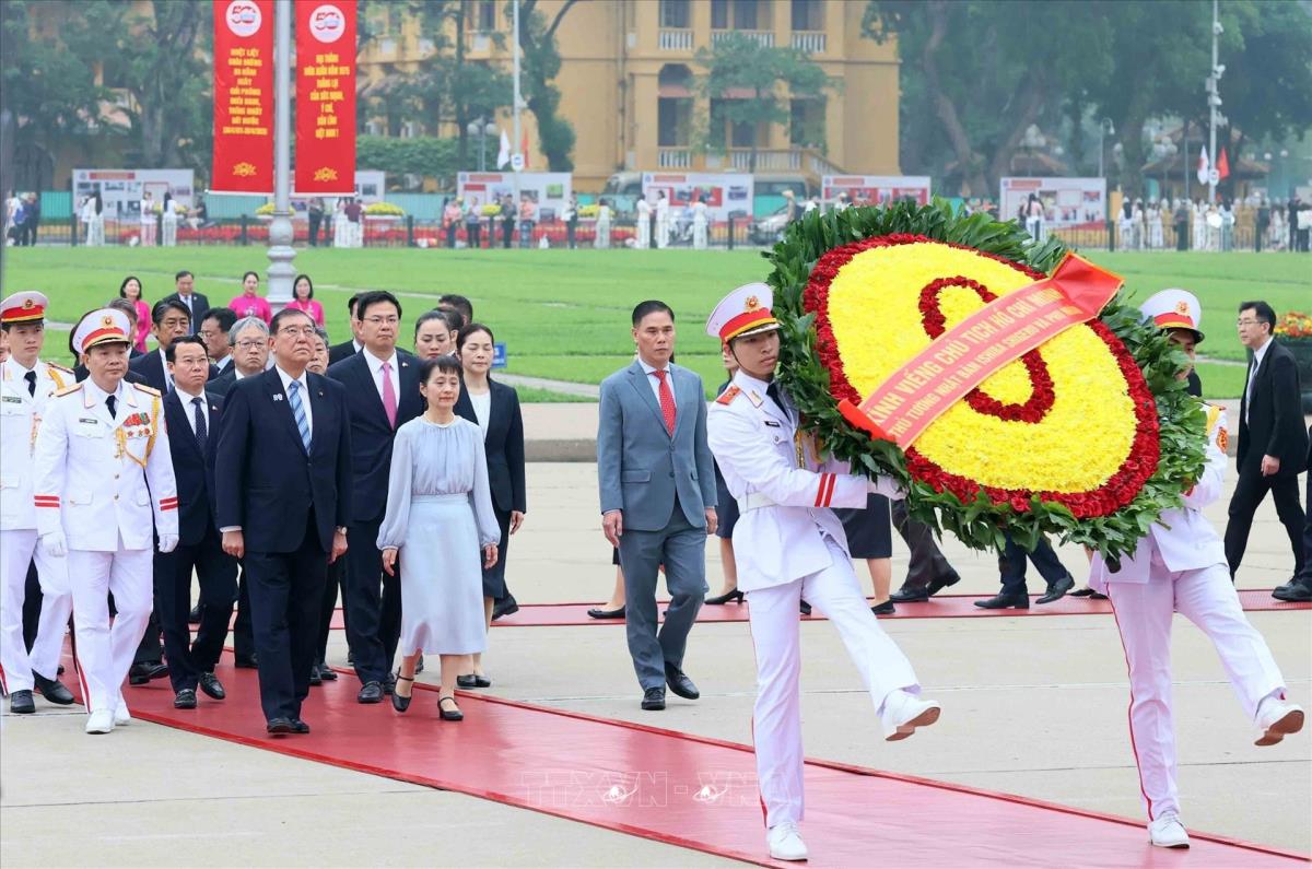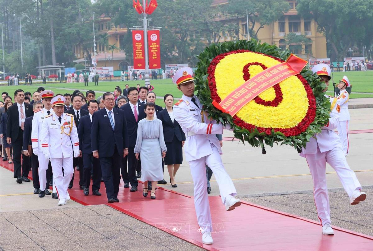Sáng 28/4/2025, tại Hà Nội, Thủ tướng Nhật Bản Ishiba Shigeru và Phu nhân đến đặt vòng hoa và vào Lăng viếng Chủ tịch Hồ Chí Minh, đặt vòng hoa tại Đài tưởng niệm các Anh hùng liệt sĩ trên đường Bắc Sơn (Ba Đình, Hà Nội).