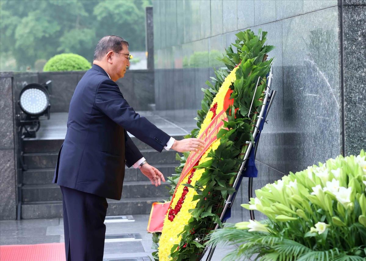Thủ tướng Nhật Bản Ishiba Shigeru đặt vòng hoa, viếng Chủ tịch Hồ Chí Minh (28/4/2025). Ảnh: An Đăng - TTXVN