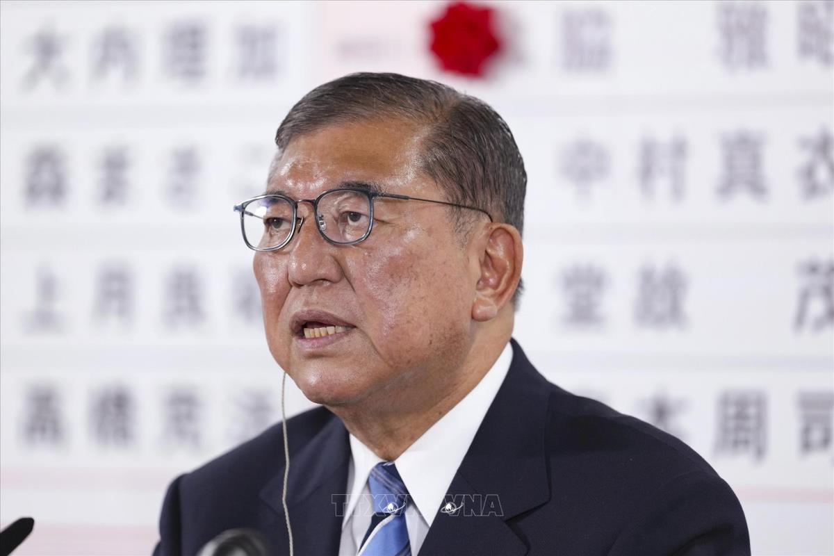 Thủ tướng Nhật Bản Shigeru Ishiba phát biểu tại cuộc họp báo ở thủ đô Tokyo ngày 20/7/2025. Ảnh: Kyodo/TTXVN