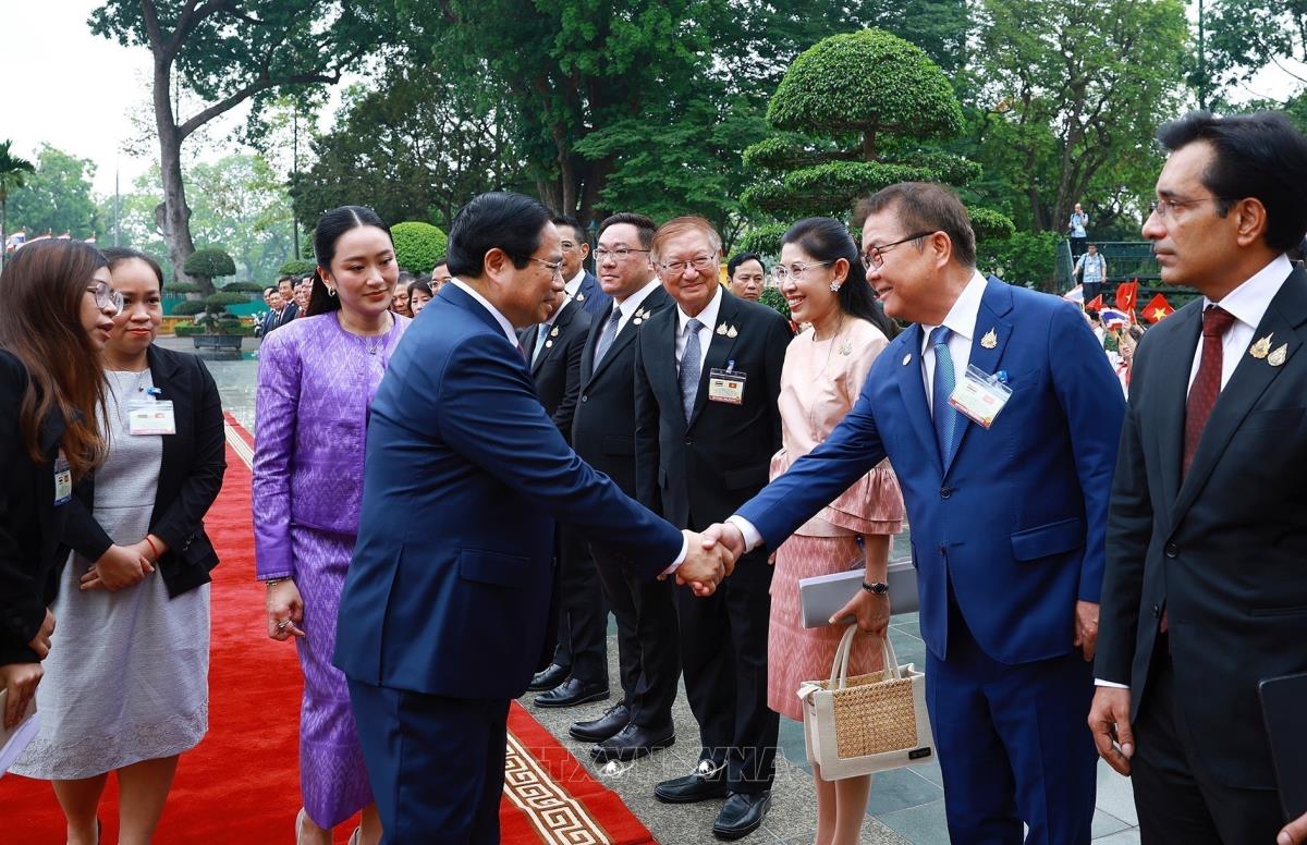 Hà Nội (TTXVN 16/5/2025) Sáng 16/5/2025, tại Phủ Chủ tịch, Thủ tướng Phạm Minh Chính chủ trì Lễ đón Thủ tướng Vương quốc Thái Lan Lan Paetongtarn Shinawatra thăm chính thức Việt Nam và đồng chủ trì Kỳ họp lần thứ tư Nội các chung Việt Nam - Thái Lan.