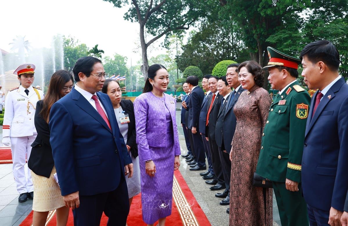 [Photo] Thủ tướng Phạm Minh Chính chủ trì Lễ đón Thủ tướng Thái Lan Paetongtarn Shinawatra