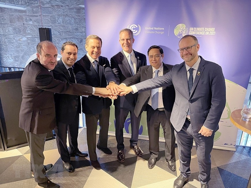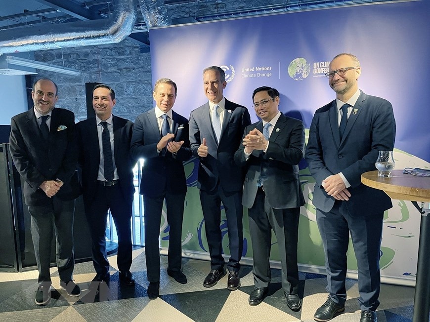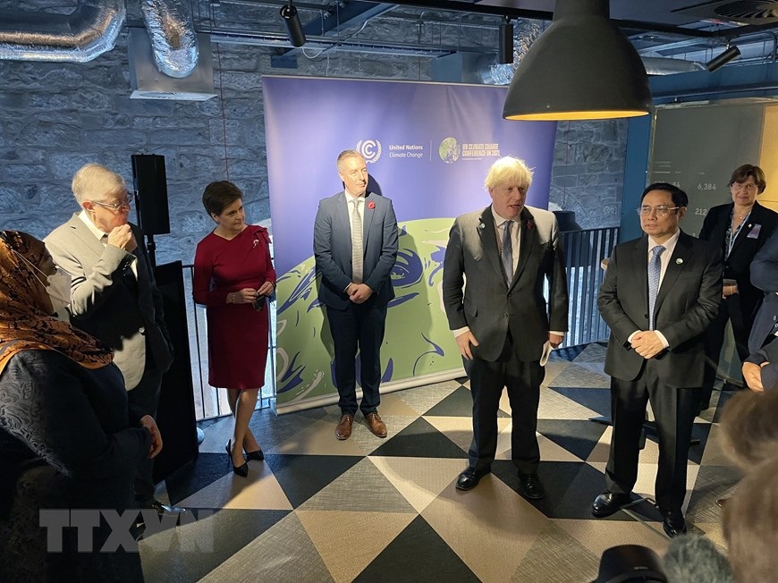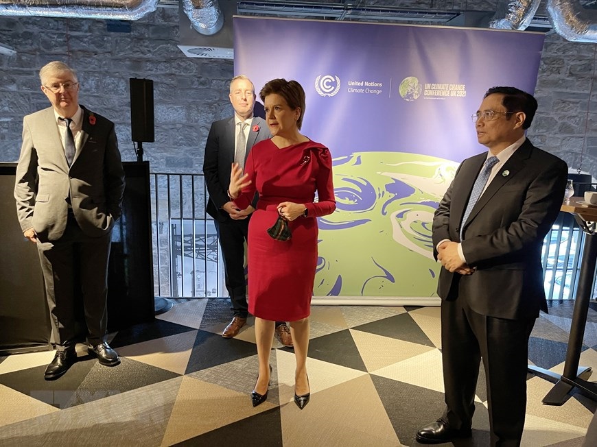 Thủ tướng Phạm Minh Chính, Thủ hiến Scotland cùng nguyên thủ các nước và tổ chức quốc tế tại buổi gặp. (Ảnh: TTXVN)