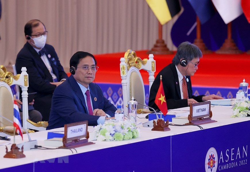 Hà Nội (TTXVN 12/11/2022) Chiều 12/11/2022, tại thủ đô Phnom Penh, Campuchia, Thủ tướng Phạm Minh Chính dự Hội nghị Cấp cao ASEAN-Hoa Kỳ lần thứ 10.