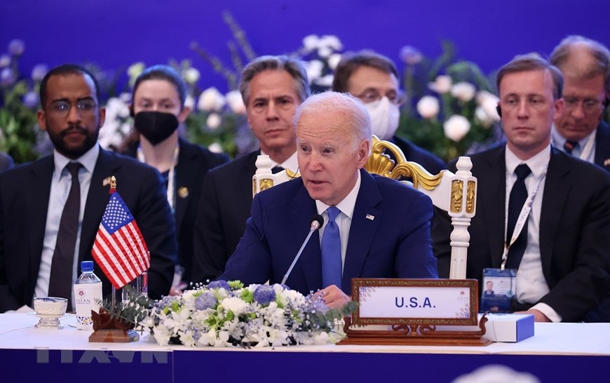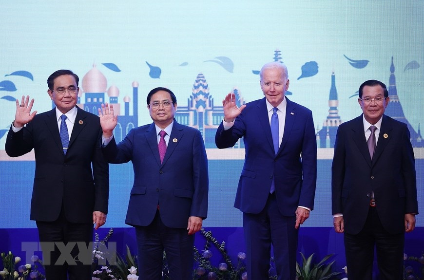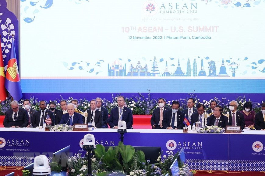 Thủ tướng Phạm Minh Chính và Tổng thống Hoa Kỳ Joe Biden tại Hội nghị Cấp cao ASEAN-Hoa Kỳ lần thứ 10. (Ảnh: Dương Giang/TTXVN)