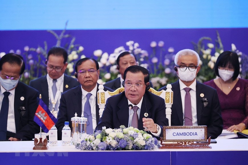 Thủ tướng Campuchia, Chủ tịch ASEAN 2022 Samdech Techo Hun Sen phát biểu. (Ảnh: Dương Giang/TTXVN)