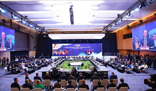 Hà Nội (TTXVN 27/10/2025) Theo đặc phái viên TTXVN, trong khuôn khổ Hội nghị Cấp cao ASEAN lần thứ 47 và các Hội nghị Cấp cao liên quan diễn ra tại Kuala Lumpur (Malaysia) ngày 27/10, Thủ tướng Chính phủ Phạm Minh Chính đã cùng các nhà lãnh đạo các nước ASEAN và đối tác (Australia, New Zealand, Nhật Bản, Hàn Quốc, Trung Quốc) tham dự Hội nghị Cấp cao Hiệp định Đối tác Kinh tế Toàn diện Khu vực (RCEP) lần thứ 5 dưới sự chủ trì của Thủ tướng nước chủ nhà Anwar Ibrahim - nước Chủ tịch ASEAN 2025.