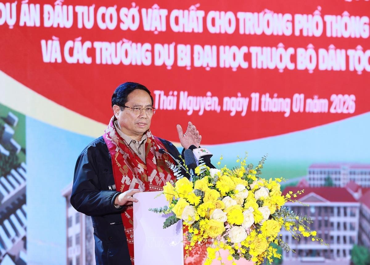 Chiều 11/1, tại tỉnh Thái Nguyên, Thủ tướng Chính phủ Phạm Minh Chính dự Lễ khởi công dự án đầu tư cơ sở vật chất cho Trường phổ thông vùng cao Việt Bắc và các trường dự bị đại học thuộc Bộ Dân tộc và Tôn giáo – những công trình chào mừng Đại hội Đảng toàn quốc lần thứ XIV.