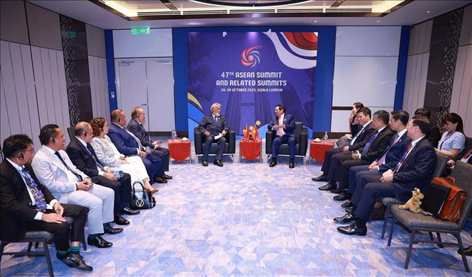 Hà Nội (TTXVN 28/10/2025) Theo đặc phái viên TTXVN, nhân dự Hội nghị Cấp cao Hiệp hội Các quốc gia Đông Nam Á lần thứ 47 (ASEAN 47) và các Hội nghị Cấp cao liên quan tại Kuala Lumpur (Malaysia), ngày 28/10, Thủ tướng Chính phủ Phạm Minh Chính đã gặp Quốc vương Brunei Darussalam Sultan Haji Hassanal Bolkiah, Thủ tướng Malaysia Anwar Ibrahim, Thủ tướng Timor Leste Xanana Gusmão.