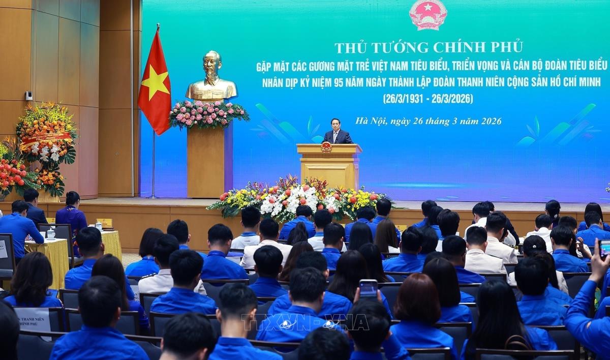 Thủ tướng Phạm Minh Chính tham dự buổi gặp mặt Gương mặt trẻ Việt Nam tiêu biểu, triển vọng và cán bộ đoàn tiêu biểu (26/3/2026). Ảnh: Dương Giang-TTXVN