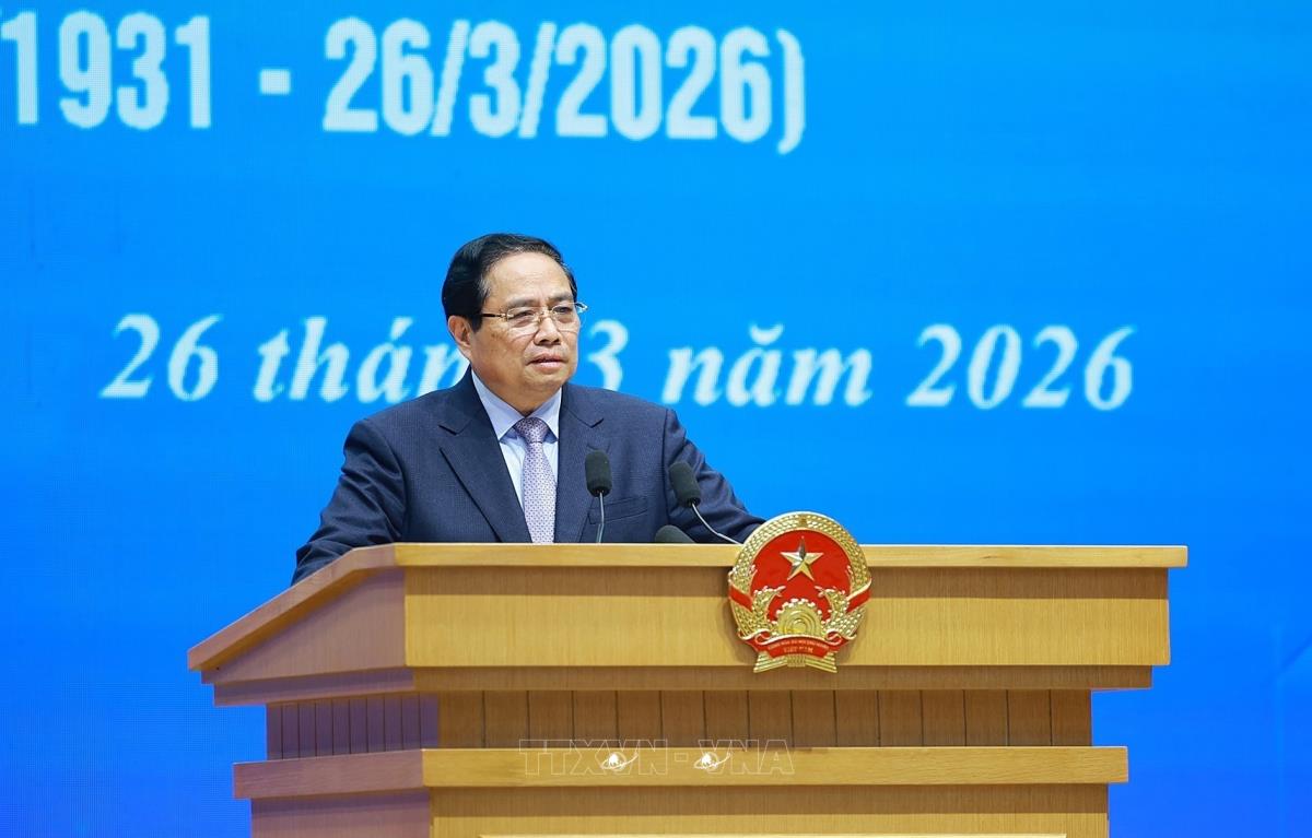 Thủ tướng Phạm Minh Chính phát biểu tại buổi gặp mặt Gương mặt trẻ Việt Nam tiêu biểu, triển vọng và cán bộ Đoàn tiêu biểu (26/3/2026). Ảnh: Dương Giang-TTXVN