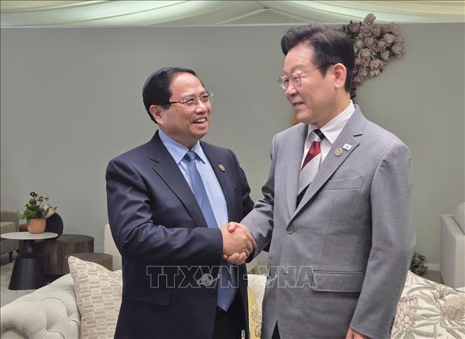 Hà Nội (TTXVN 22/11/2025) Theo đặc phái viên TTXVN, nhân dự Hội nghị thượng đỉnh Nhóm các nền kinh tế phát triển và mới nổi hàng đầu thế giới (G20) tại Nam Phi, sáng 22/11 theo giờ địa phương, Thủ tướng Chính phủ Phạm Minh Chính đã gặp Tổng thống Hàn Quốc, Thủ tướng Ấn Độ, Thủ tướng Tây Ban Nha để trao đổi và thúc đẩy hợp tác song phương cũng như chia sẻ các vấn quốc tế cùng quan tâm.