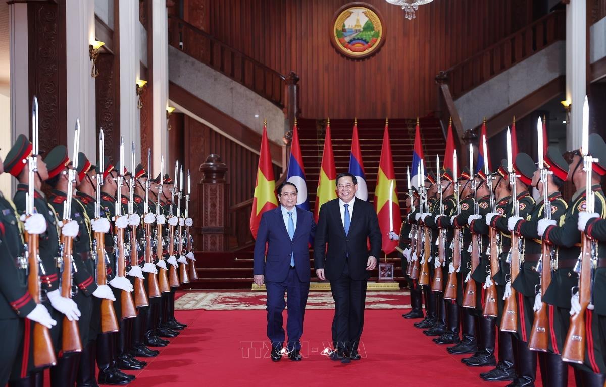[Photo] Thủ tướng Phạm Minh Chính gặp Thủ tướng Lào
