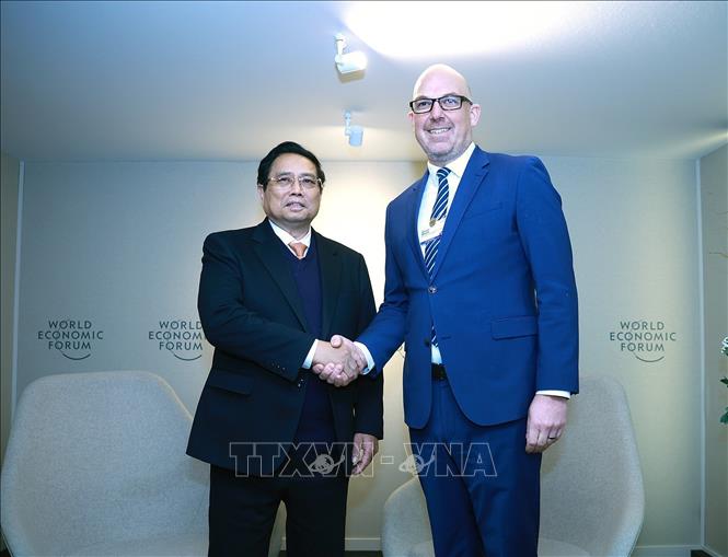 Hà Nội (TTXVN 22/1/2025) Theo đặc phái viên TTXVN, nhân dịp tham dự Hội nghị thường niên Diễn đàn Kinh tế Thế giới (WEF) lần thứ 55, sáng 22/1 theo giờ địa phương, tại Davos, Thụy Sĩ, Thủ tướng Chính phủ Phạm Minh Chính có cuộc gặp Thủ tướng Liechtenstein Daniel Risch.