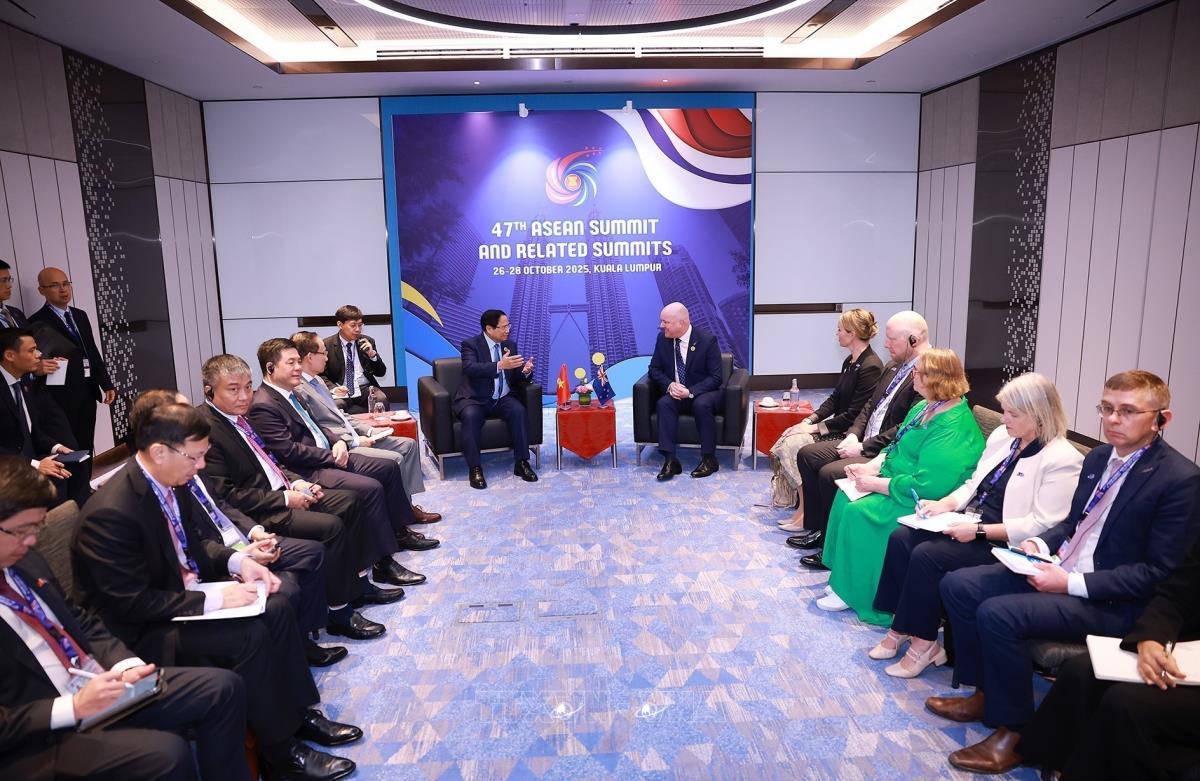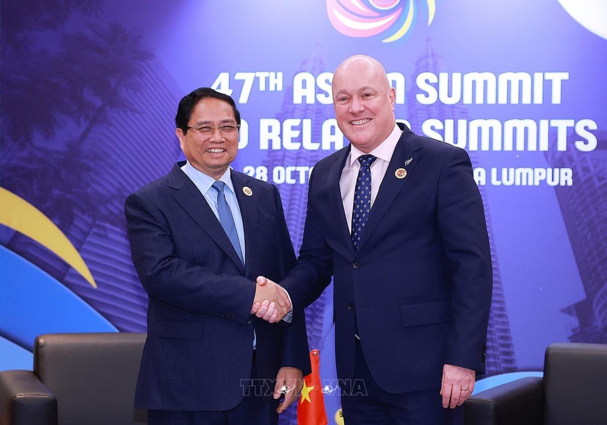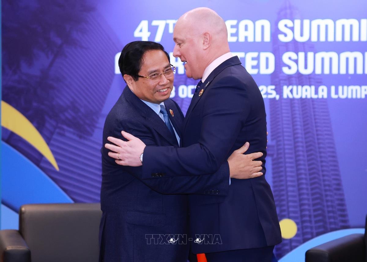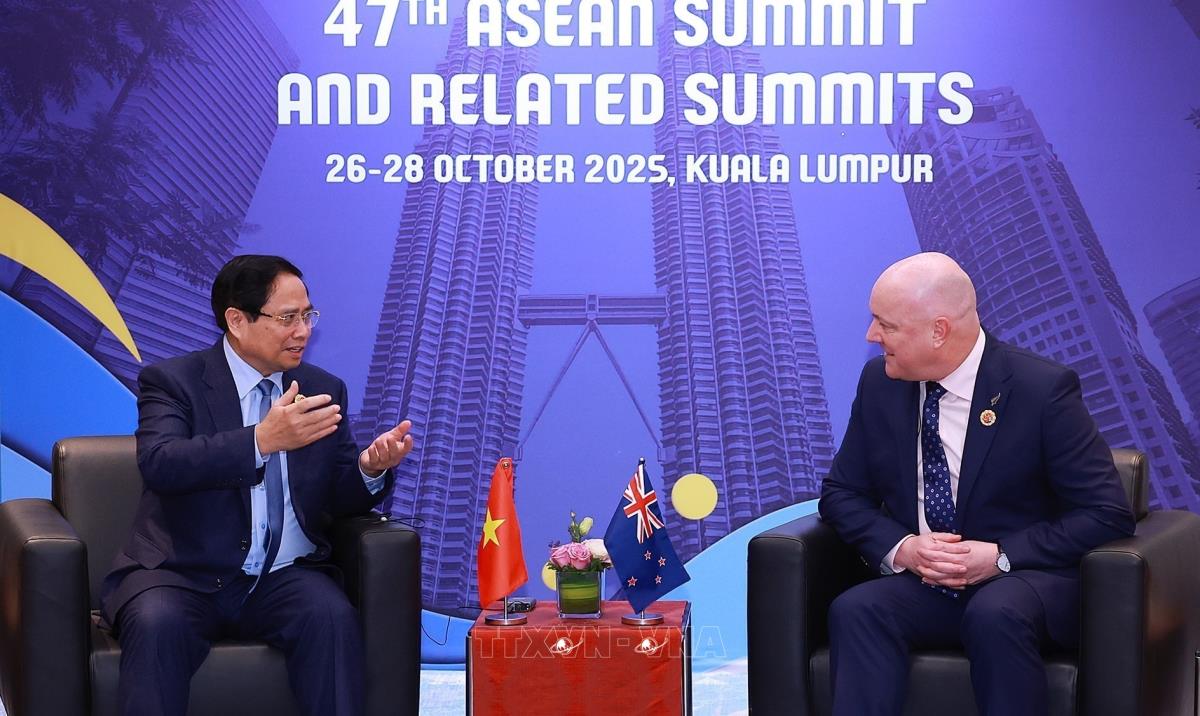 Hà Nội (TTXVN 27/10/2025) Nhân chuyến tham dự Hội nghị Cấp cao ASEAN lần thứ 47 và các Hội nghị Cấp cao liên quan diễn ra tại Kuala Lumpur, sáng 27/10/2025, Thủ tướng Phạm Minh Chính gặp Thủ tướng New Zealand Christopher Luxon.