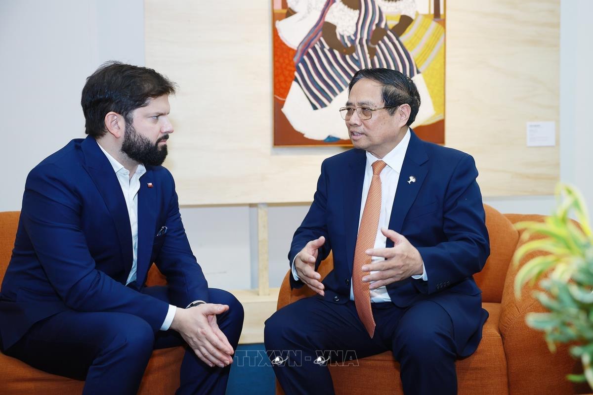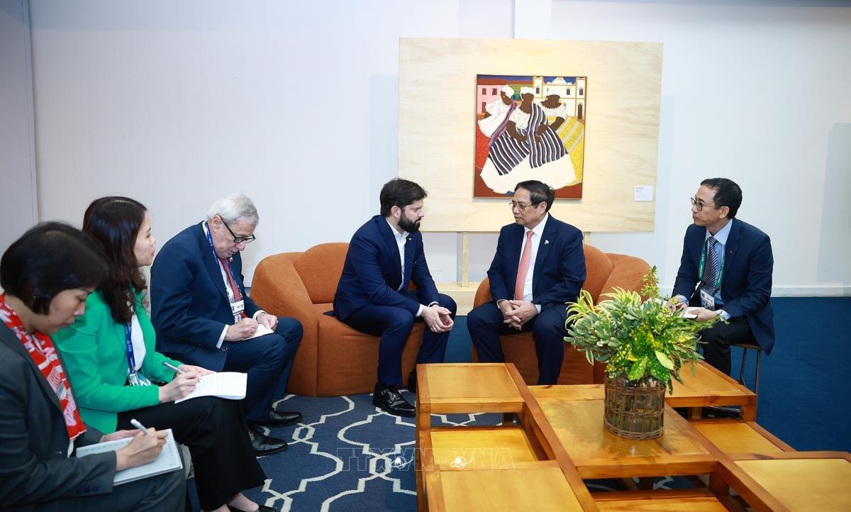 Nhân dịp tham dự Hội nghị Thượng đỉnh Nhóm các nền kinh tế mới nổi (BRICS) mở rộng năm 2025 tại thành phố Rio de Janeiro (Brazil), chiều 7/7/2025, giờ địa phương (tối cùng ngày, giờ Hà Nội), Thủ tướng Phạm Minh Chính gặp Tổng thống Chile Gabriel Boric.