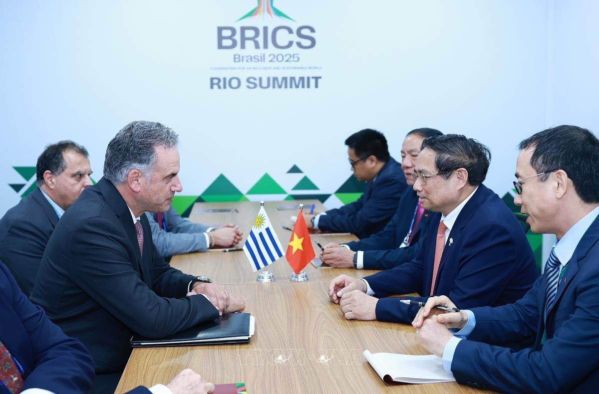 Nhân dịp tham dự Hội nghị thượng đỉnh Nhóm các nền kinh tế mới nổi (BRICS) mở rộng năm 2025 tại thành phố Rio de Janeiro (Brazil), chiều 7/7/2025, giờ địa phương (tối cùng ngày, giờ Hà Nội), Thủ tướng Phạm Minh Chính gặp Tổng thống Uruguay Yamandú Orsi.