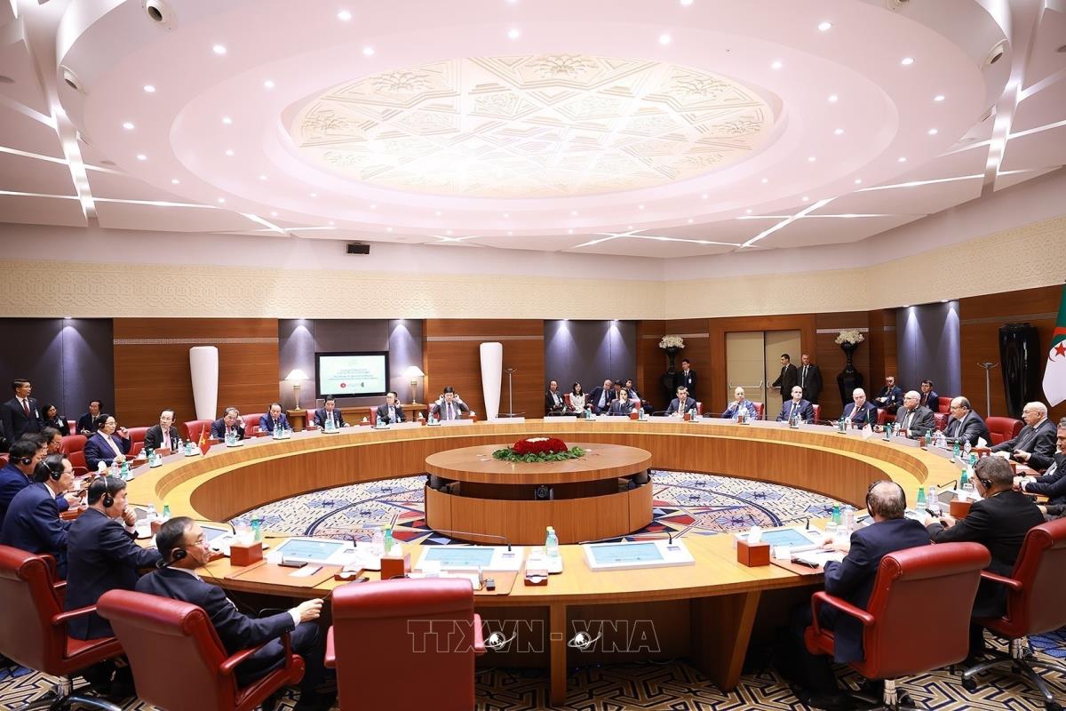 Hà Nội (TTXVN 19/11/2025) Theo đặc phái viên TTXVN, trong khuôn khổ chuyến thăm chính thức Algeria, sáng 19/11 theo giờ địa phương, tại Trung tâm Hội nghị quốc tế ở thủ đô Algiers, Thủ tướng Chính phủ Phạm Minh Chính đã hội đàm với Thủ tướng Algeria Sifi Ghrieb. Hai bên nhất trí nâng cấp quan hệ Việt Nam – Algeria lên Đối tác Chiến lược.