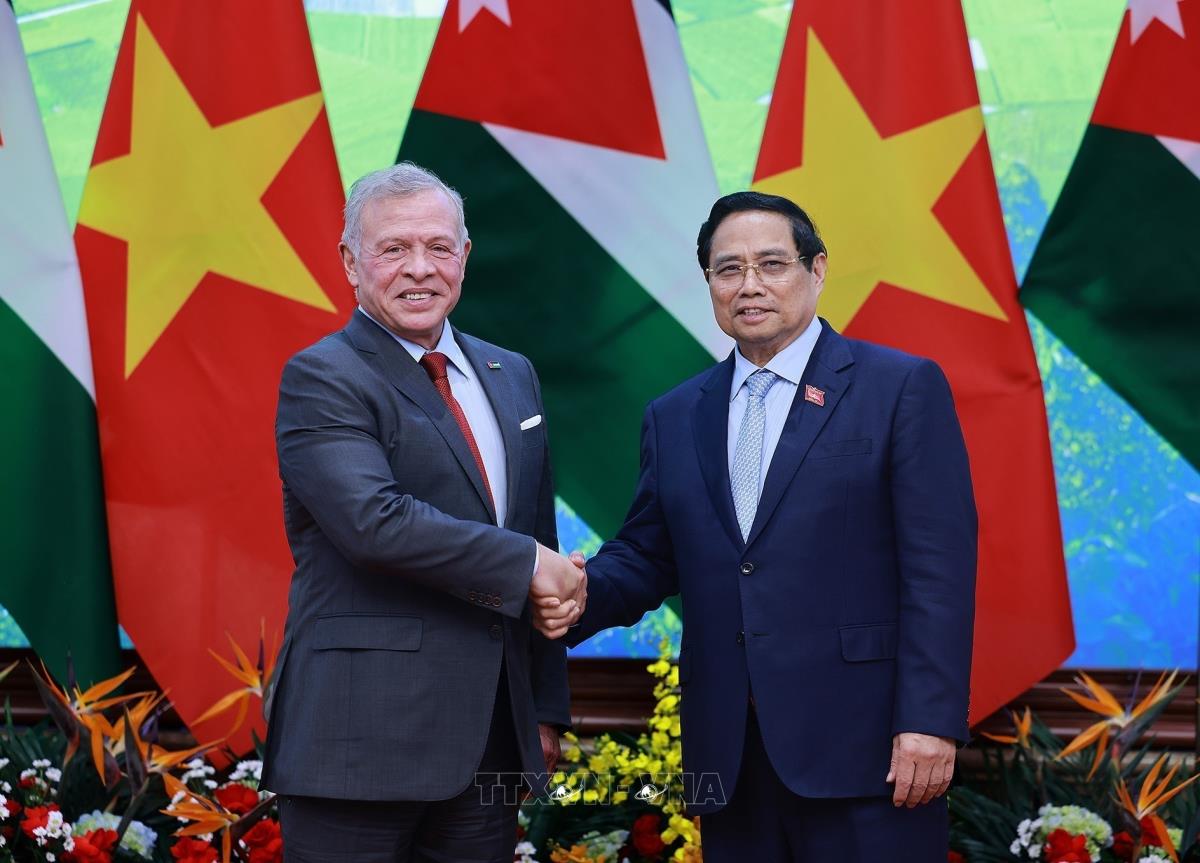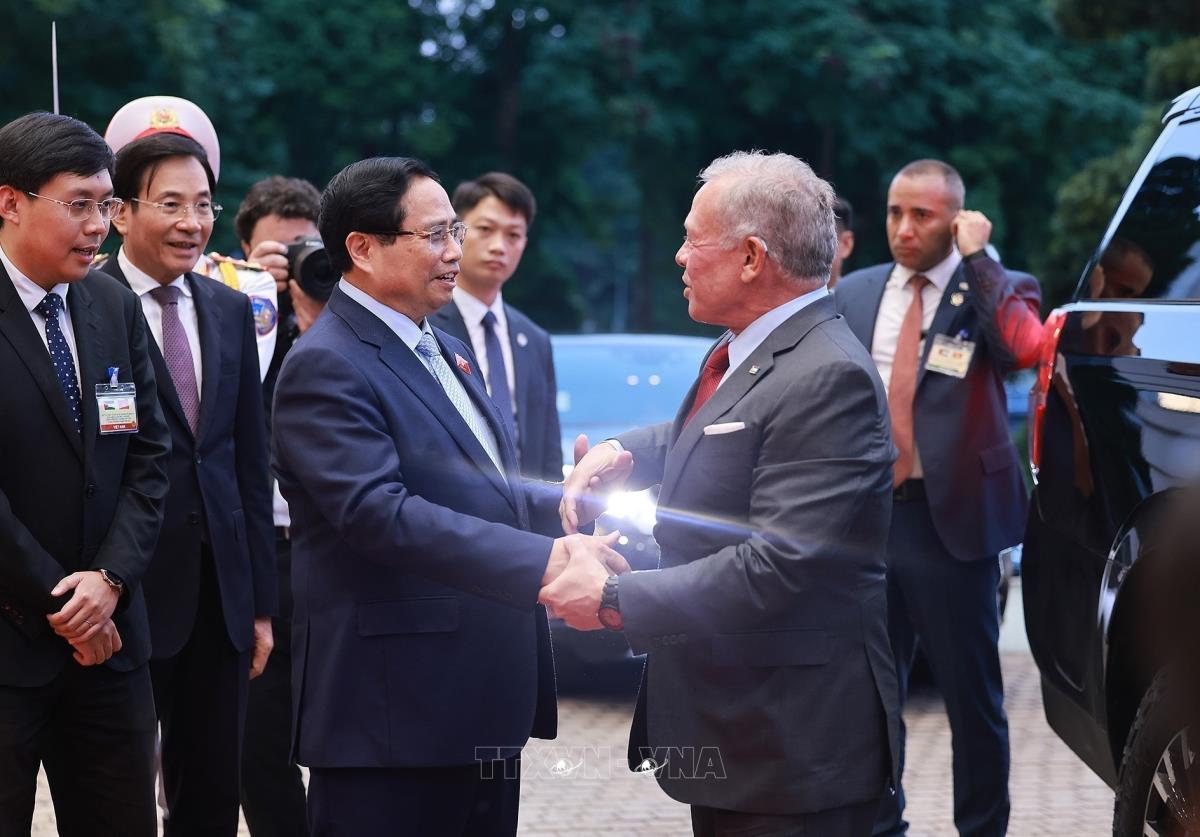 Thủ tướng Phạm Minh Chính đón Quốc vương Jordan Abdullah II bin Al Hussein (12/11/2025). Ảnh: Dương Giang-TTXVN