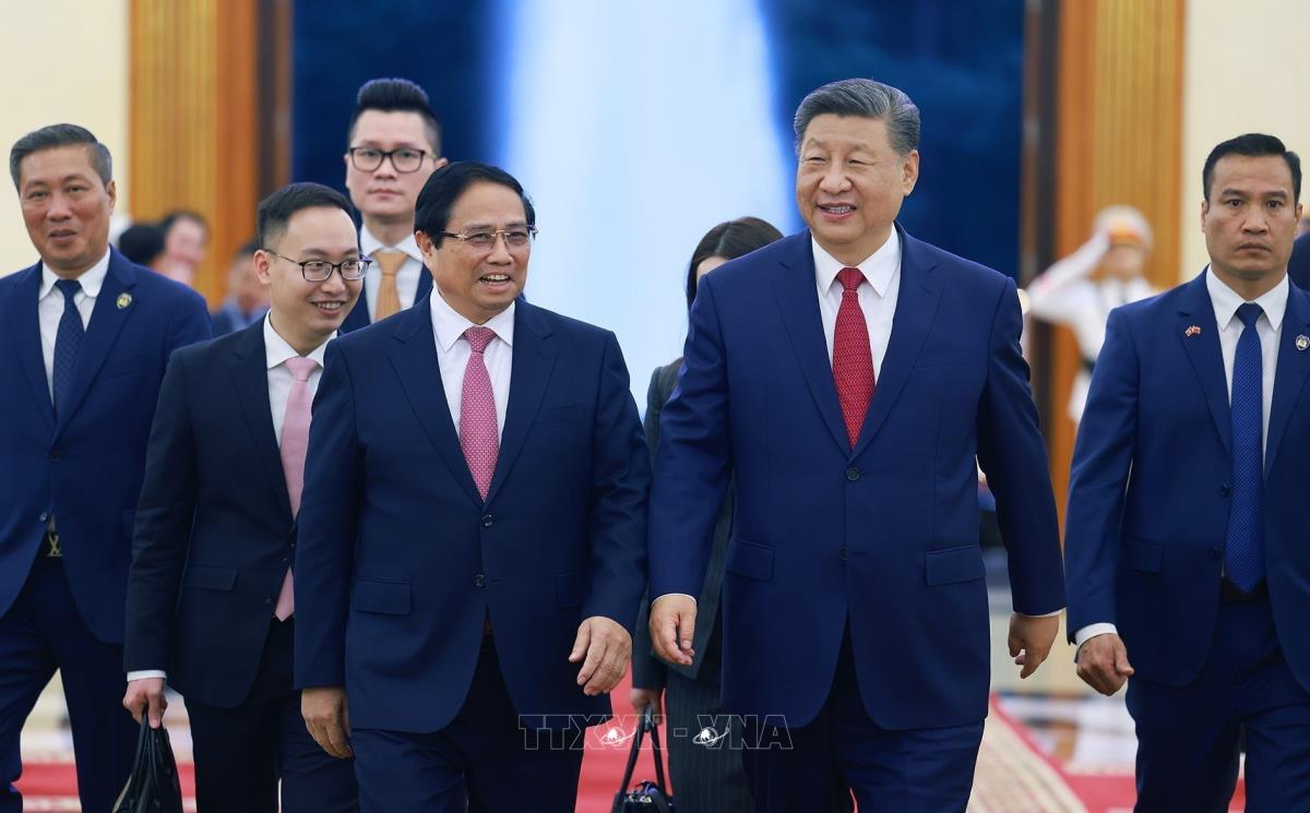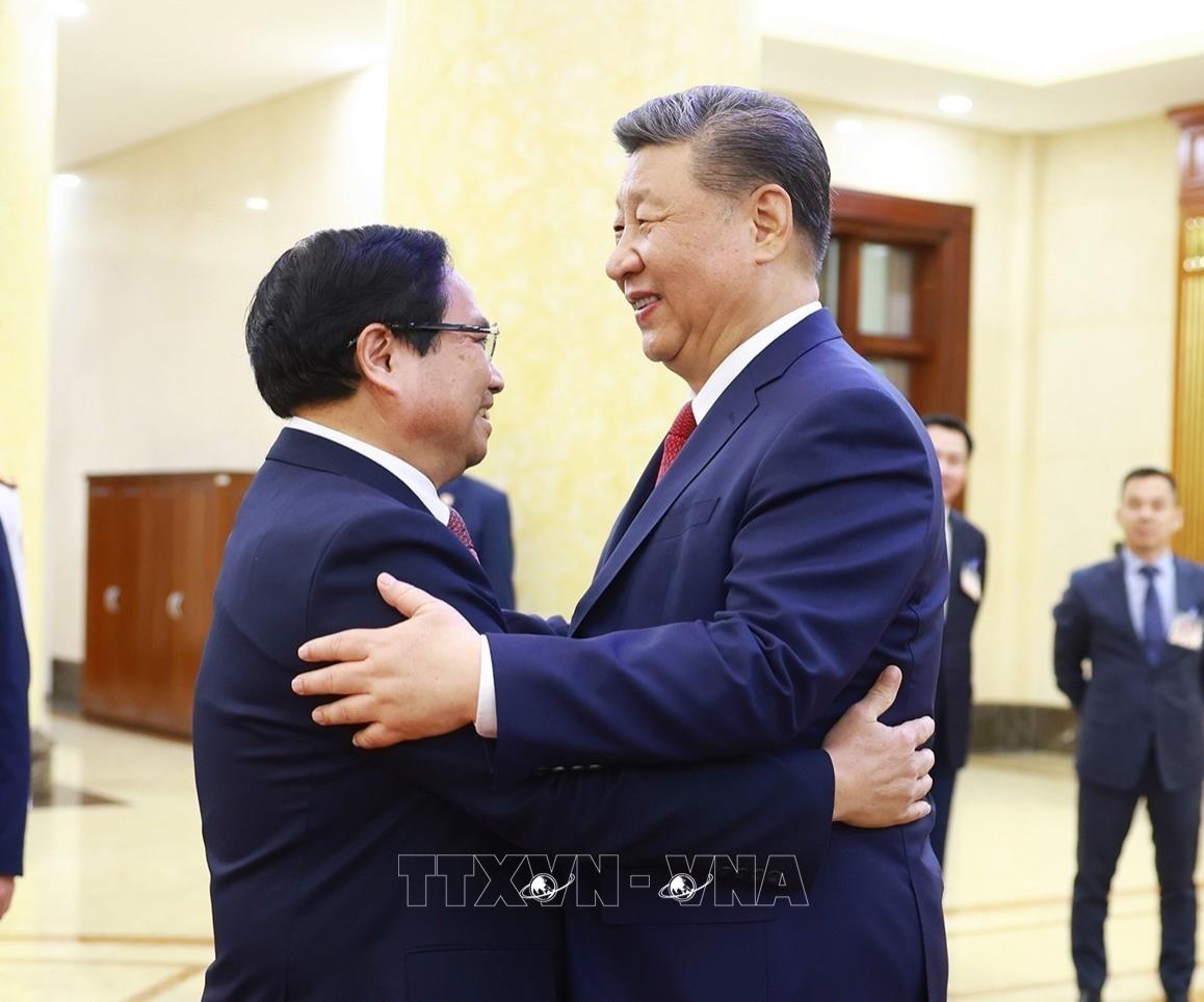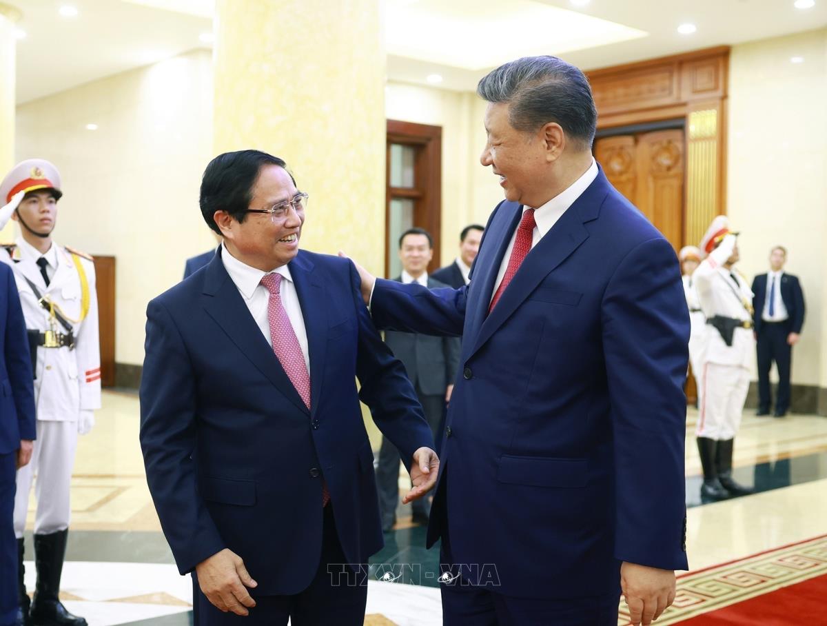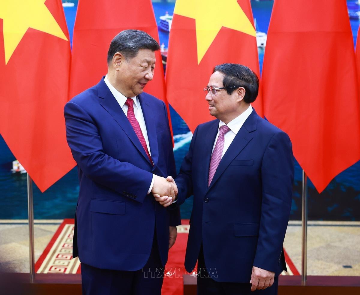 Thủ tướng Phạm Minh Chính hội kiến Tổng Bí thư, Chủ tịch nước Trung Quốc Tập Cận Bình (14/4/2025). Ảnh: Dương Giang - TTXVN