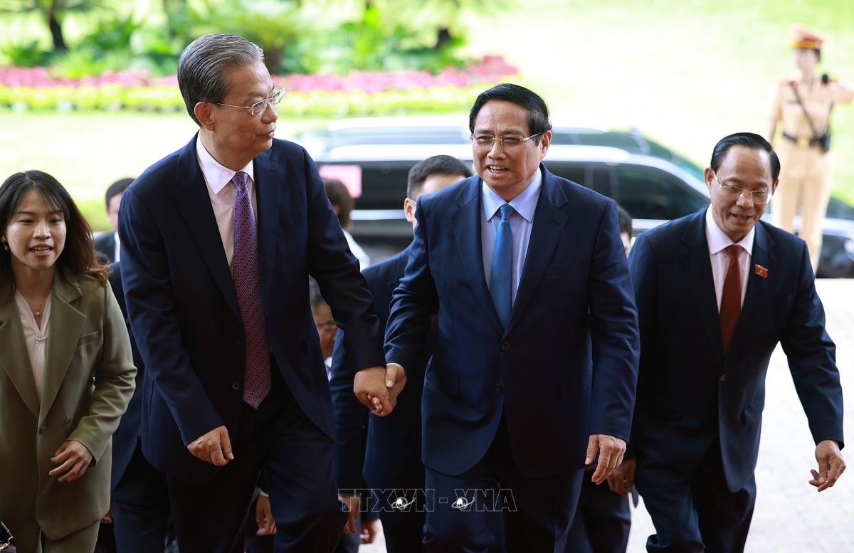 Thủ tướng Phạm Minh Chính hội kiến Ủy viên trưởng Nhân đại toàn quốc Trung Quốc Triệu Lạc Tế (2/9/2025). Ảnh: Dương Giang-TTXVN