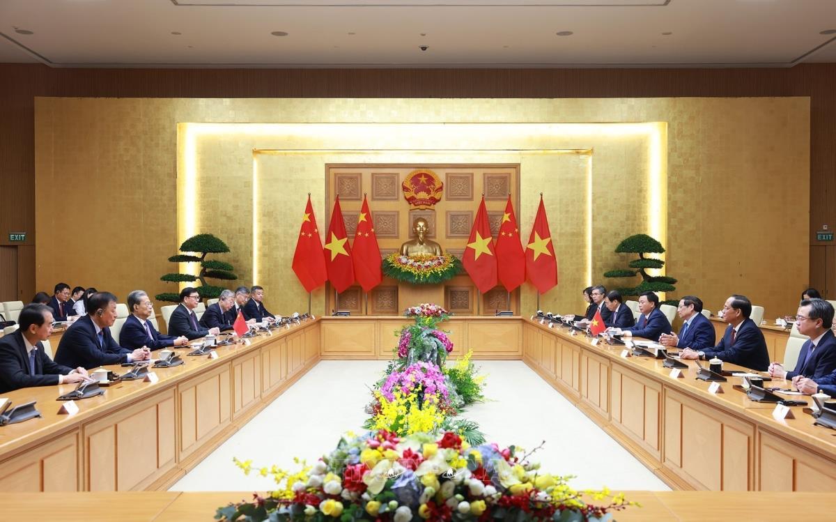Thủ tướng Phạm Minh Chính hội kiến Ủy viên trưởng Nhân đại toàn quốc Trung Quốc Triệu Lạc Tế (2/9/2025). Ảnh: Dương Giang-TTXVNv