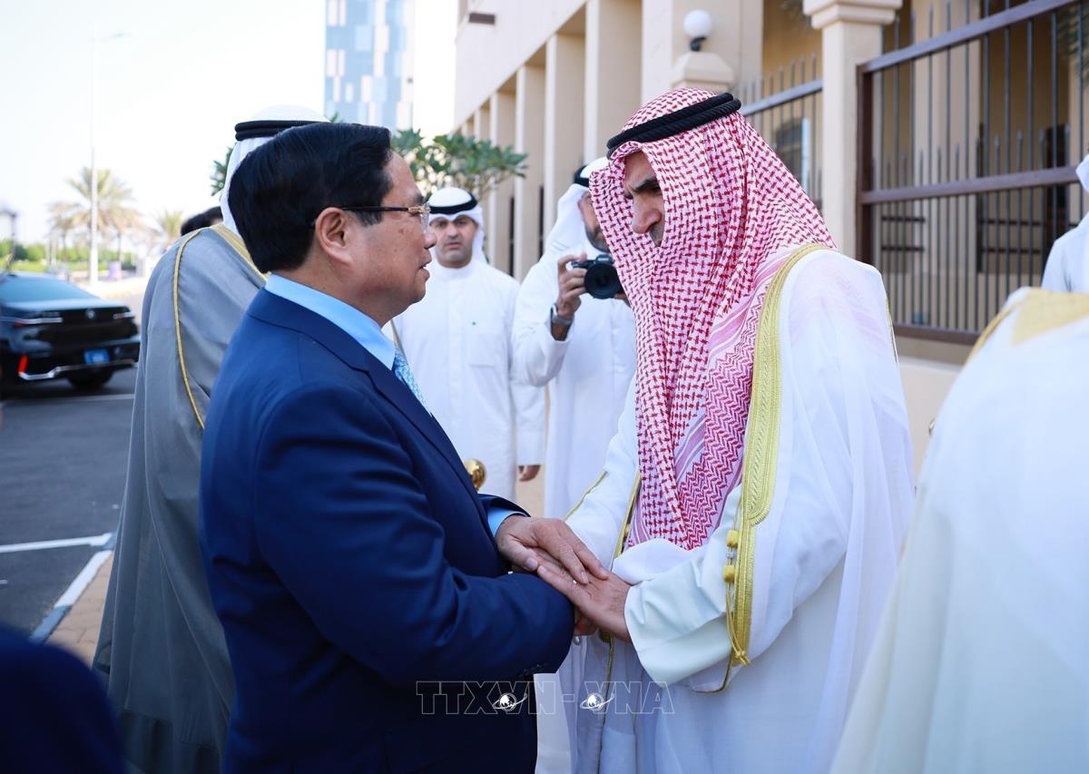 Thủ tướng Phạm Minh Chính và các đại biểu đến thăm và phát biểu chính sách tại Học viện Ngoại giao Kuwait (18/11/2025). Ảnh: Dương Giang-TTXVN