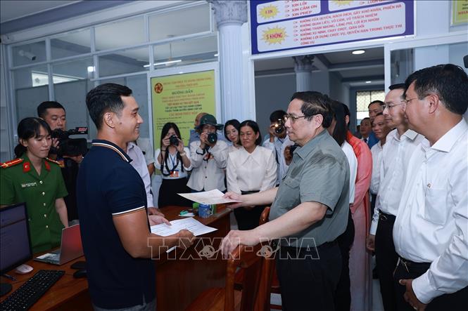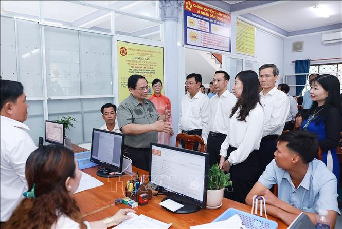An Giang (TTXVN 21/7/2025) Sáng 21/7, tại Nghĩa trang Dốc Bà Đắc ở phường Thới Sơn, tỉnh An Giang, Ủy viên Bộ Chính trị, Thủ tướng Chính phủ Phạm Minh Chính dự Lễ viếng, truy điệu, an táng hài cốt liệt sĩ, chuyên gia Việt Nam hi sinh tại Vương quốc Campuchia và trong nước.