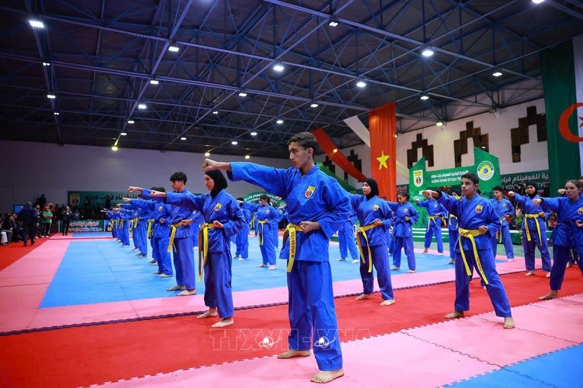 Màn biểu diễn của Đội tuyển quốc gia Vovinam Algeria và các vận động viên của Liên đoàn Vovinam tại Algeria (20/11/2025). Ảnh: Dương Giang-TTXVN