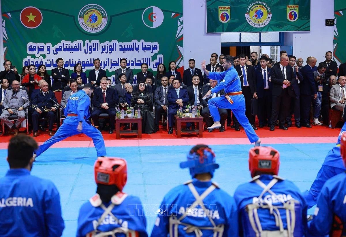 Theo đặc phái viên TTXVN, trong chương trình thăm chính thức Cộng hoà Algeria, chiều 20/11 theo giờ địa phương, tại thủ đô Algiers, Thủ tướng Chính phủ Phạm Minh Chính và Phu nhân đã thăm Liên đoàn Vovinam.