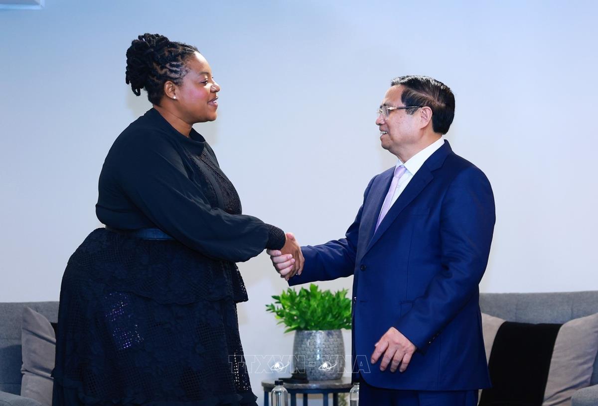 Thủ tướng Phạm Minh Chính tiếp bà Sesakho Magadla, Tổng Giám đốc điều hành Công ty Dầu khí Quốc gia Nam Phi (21/11/2025). Ảnh: Dương Giang-TTXVN