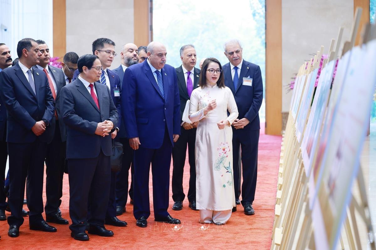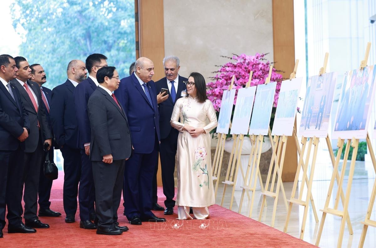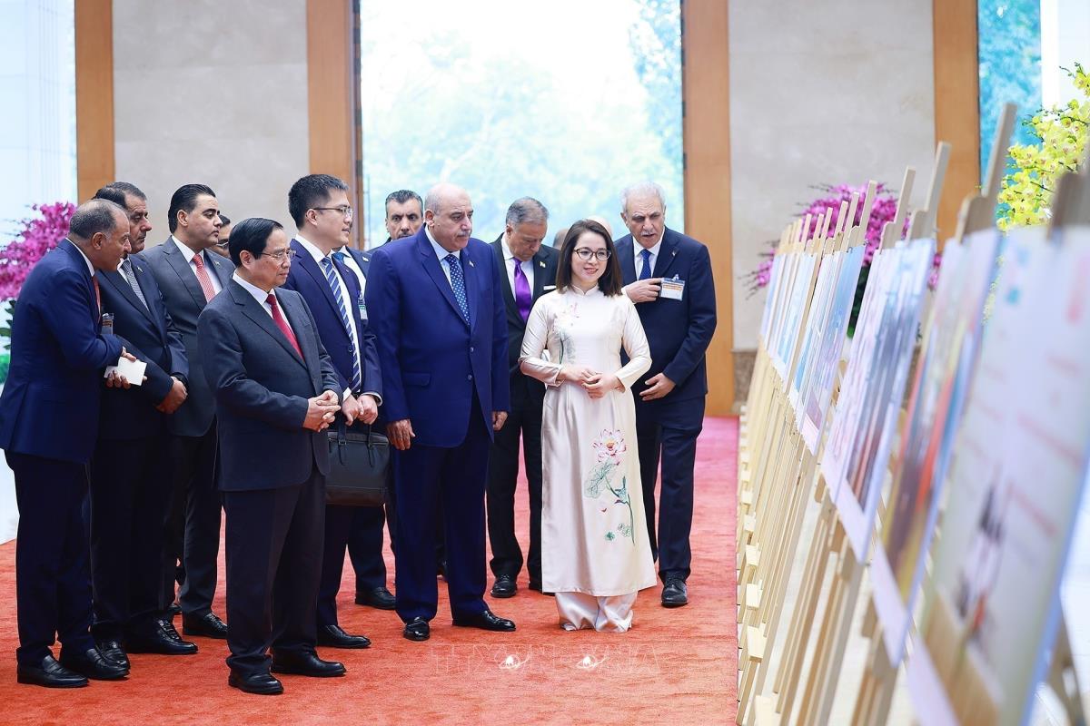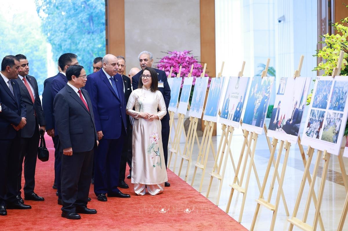 [Photo] Thủ tướng Phạm Minh Chính và Chủ tịch Hạ viện Jordan tham quan trưng bày ảnh về quan hệ hai nước