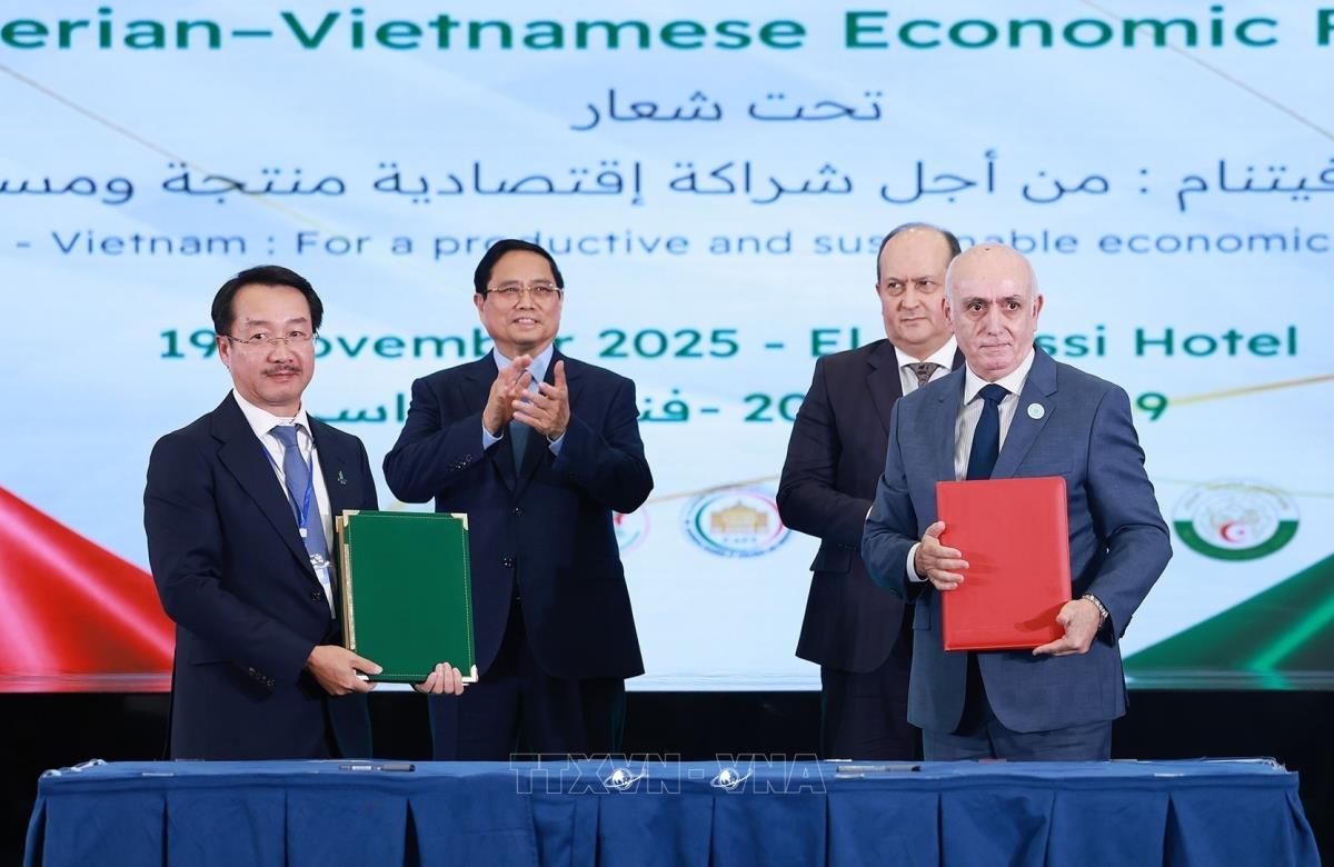 Hà Nội (TTXVN 20/11/2025) Theo đặc phái viên TTXVN, trong chương trình thăm chính thức Cộng hoà Algeria, tối 19/11, sau khi kết thúc Diễn đàn kinh tế Việt Nam - Algeria và các cuộc hội đàm, hội kiến giữa Lãnh đạo cấp cao hai nước, trên tinh thần “đã nói là làm, đã cam kết là thực hiện”, Thủ tướng Chính phủ Phạm Minh Chính và Thủ tướng Algeria Sifi Ghrieb đã đồng chủ trì cuộc làm việc với các bộ ngành và một số doanh nghiệp hai nước để triển khai các cam kết đã thống nhất.