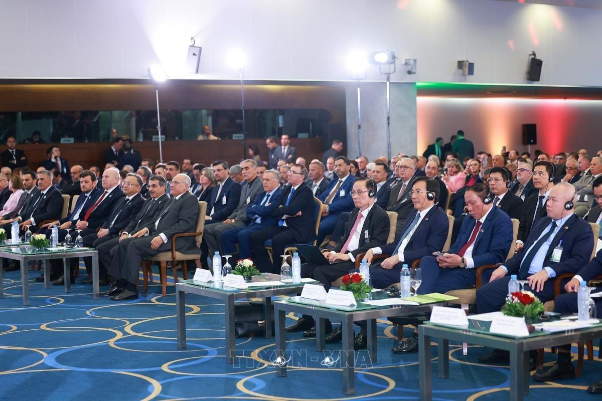Hà Nội (TTXVN 19/11/2025) Chiều 19/11/2025, giờ địa phương (tối cùng ngày, giờ Hà Nội), tại thủ đô Algiers, Thủ tướng Phạm Minh Chính và Thủ tướng Algeria Sifi Ghrieb tham dự và phát biểu tại Diễn đàn kinh tế Việt Nam – Algeria.