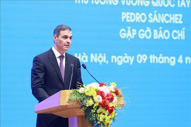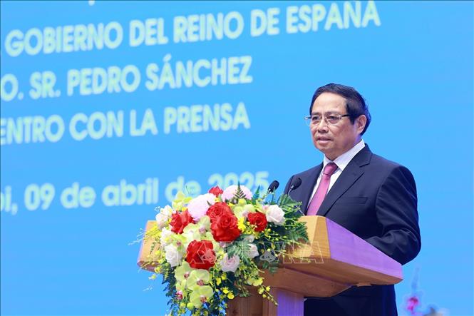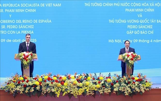 Hà Nội (TTXVN 9/4/2025) Sáng 9/4, tại Trụ sở Chính phủ, Thủ tướng Chính phủ Phạm Minh Chính và Thủ tướng Vương quốc Tây Ban Nha Pedro Sanchez đã họp báo chung thông báo kết quả ngay sau hội đàm.