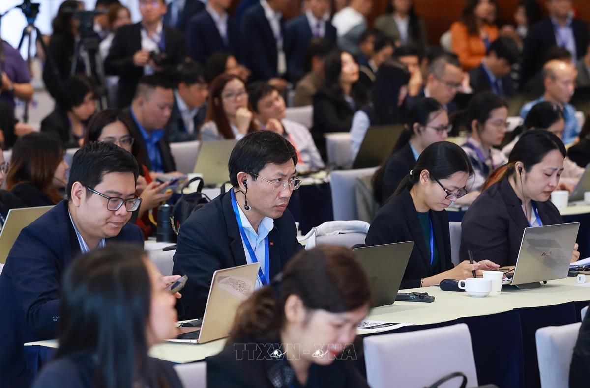 Đại diện các cơ quan báo chí trong nước và quốc tế tham dự họp báo (25/10/2025). Ảnh: Dương Giang-TTXVN