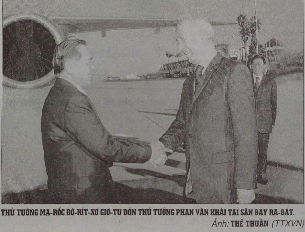 Hà Nội (TTXVN 18/11/2004) Theo đặc phái viên TTXVN, nhận lời mời của Thủ tướng Ma-rốc Đờ-rít-xơ Giơ-tu, chiều 17/11 Thủ tướng Phan Văn Khải và Đoàn đại biểu Chính phủ nước ta đã đến thủ đô Ra-bát, bắt đầu thăm chính thức Vương quốc Ma-rốc (Maroc).