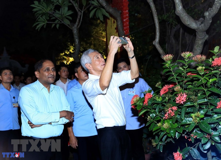 Hà Nội (TTXVN 27/8/2023) Tối 27/8/2023, ngay sau khi đến Hà Nội, Thủ tướng Cộng hòa Singapore Lý Hiển Long đã đi dạo, tham quan phố cổ Hà Nội. Thủ tướng Cộng hòa Singapore Lý Hiển Long đi dạo trên cầu Thê Húc. (Ảnh: An Đăng/TTXVN)Thủ tướng Cộng hòa Singapore Lý Hiển Long và các thành viên trong đoàn đi dạo tại khu vực Hồ Hoàn Kiếm. (Ảnh: An Đăng/TTXVN)Thủ tướng Cộng hòa Singapore Lý Hiển Long ấn tượng với kiến trúc độc đáo cùng vẻ đẹp cổ kính tại Đền Ngọc Sơn. (Ảnh: An Đăng/TTXVN)Thủ tướng Cộng hòa Singapore Lý Hiển Long ghi lại những hình ảnh, nét văn hóa của Thủ đô. (Ảnh: An Đăng/TTXVN)