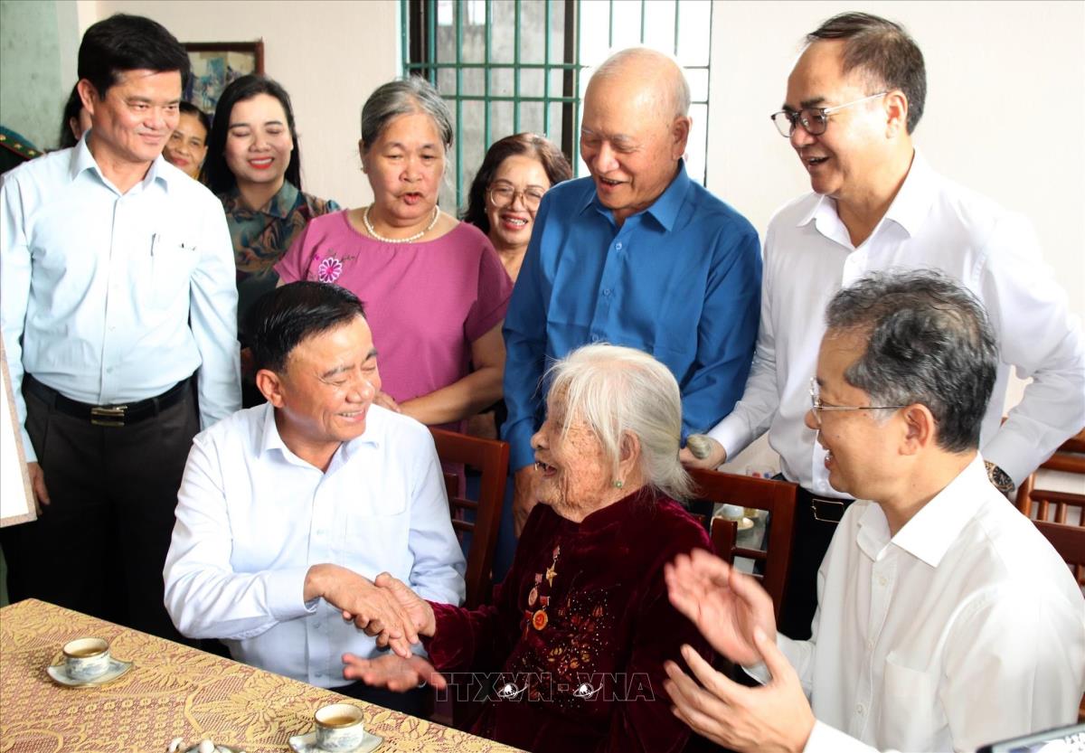 Thường trực Ban Bí thư Trần Cẩm Tú thăm, tặng quà cho Mẹ Việt Nam anh hùng Mai Thị Sây (phường Ngũ Hành Sơn, thành phố Đà Nẵng) (21/7/2025). Ảnh: Quốc Dũng - TTXVN