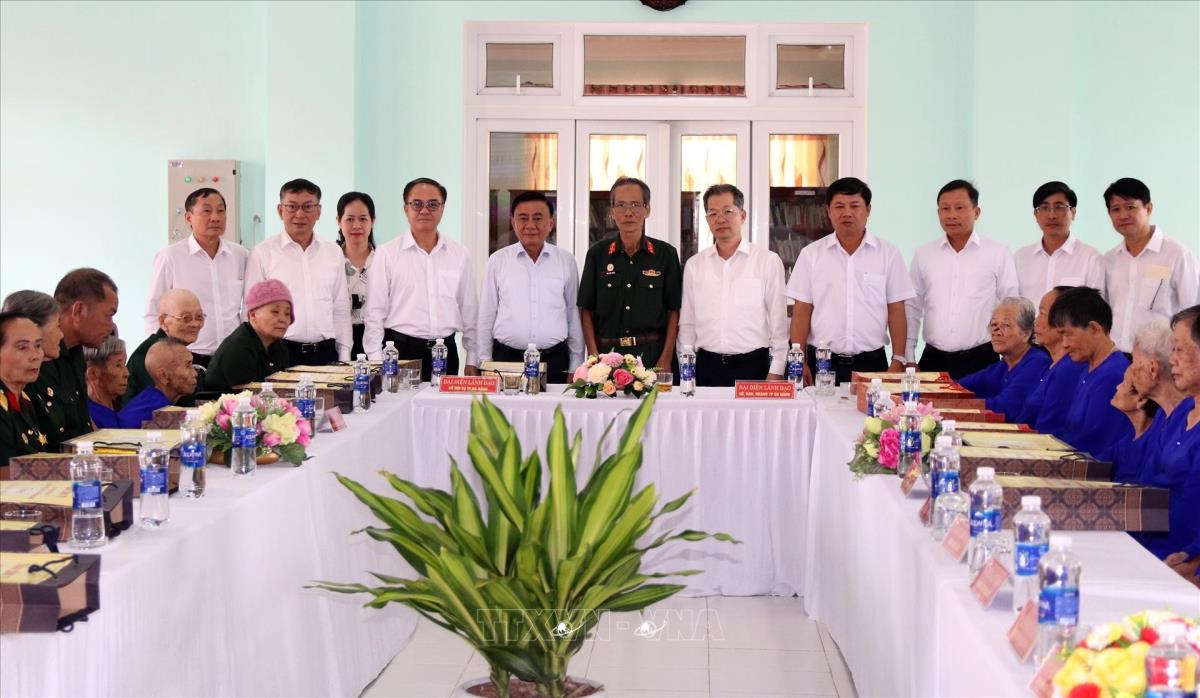 Đoàn công tác chụp ảnh lưu niệm tại Trung tâm Phụng dưỡng người có công cách mạng thành phố Đà Nẵng (cơ sở 2) (21/7/2025). Ảnh: Quốc Dũng - TTXVN