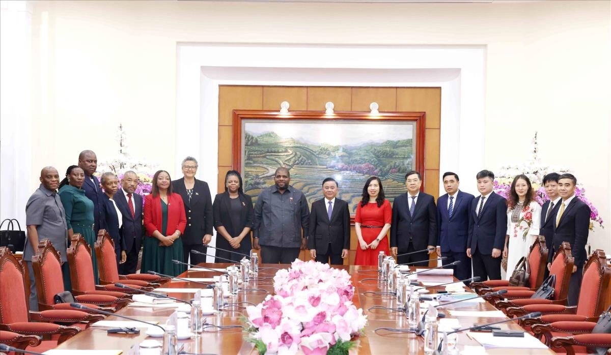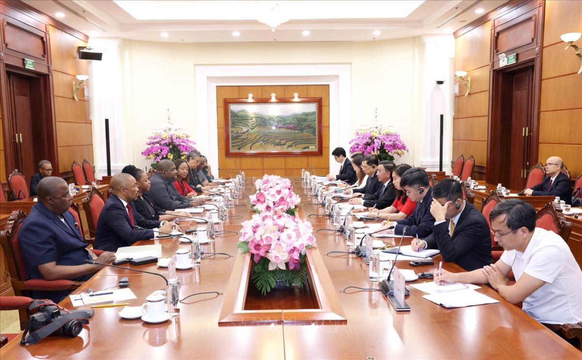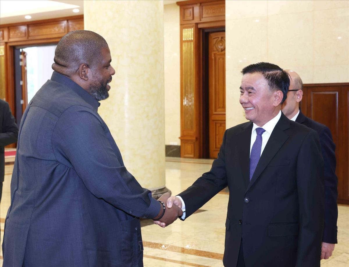 Thường trực Ban Bí thư Trần Cẩm Tú tiếp Tổng thư ký Đảng Mặt trận giải phóng Mozambique (FRELIMO) Chakil Felizardo Aboobacar (28/4/2025). Ảnh: Phương Hoa - TTXVN