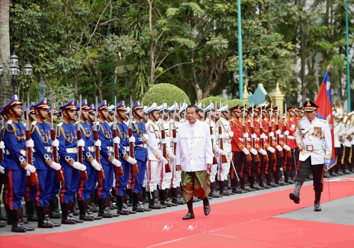 Thượng nghị sĩ Hun Sen, Chủ tịch Hội đồng cố vấn tối cao của Quốc vương Campuchia, Chủ tịch Đảng Nhân dân Campuchia (CPP) đến tham dự kỳ họp. Ảnh: AKP/TTXVN phát