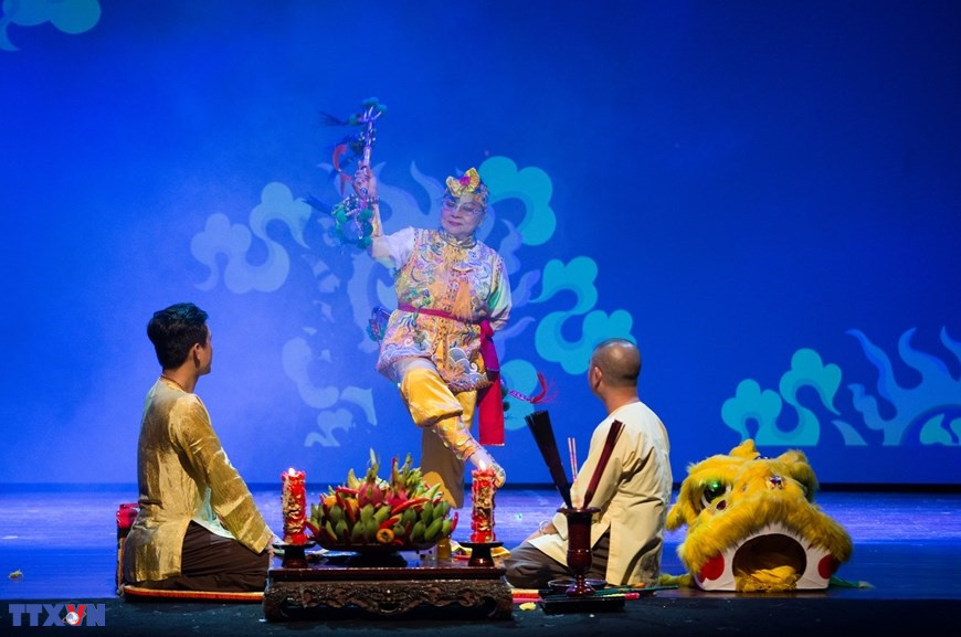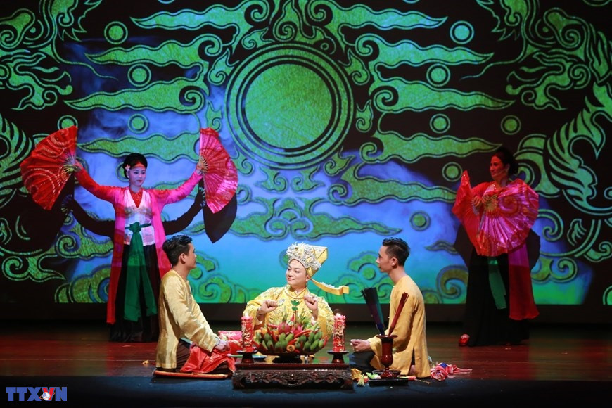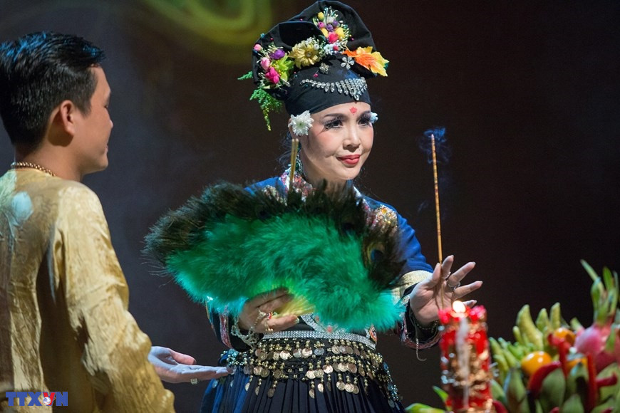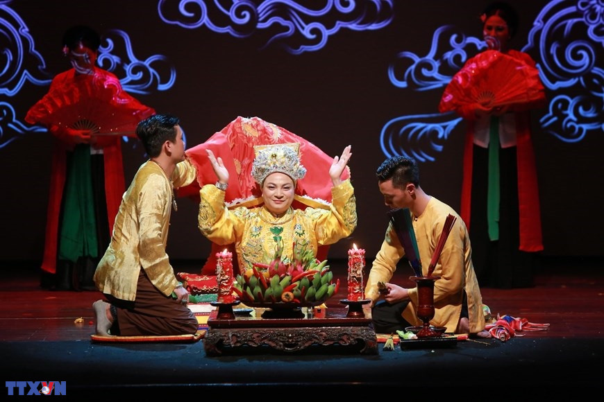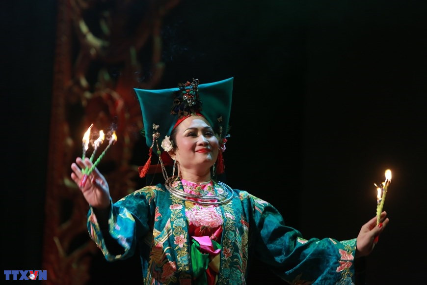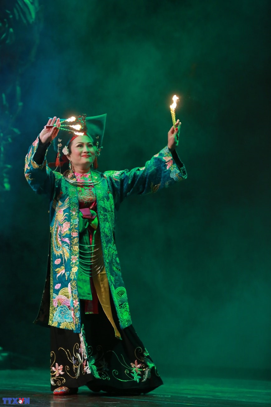 Trình diễn giá hầu Cô bé Thượng Ngàn. (Ảnh: Trương Văn Vị)