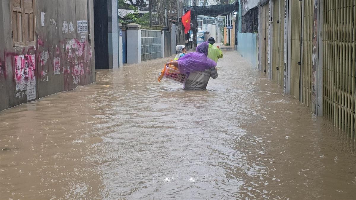 Nhiều khu vực như chợ Vĩnh Hải và các phường phía Bắc tỉnh bị ngập sâu, mực nước có nơi lên đến 1,5m (20/11/2025). Ảnh: Đặng Tuấn - TTXVN