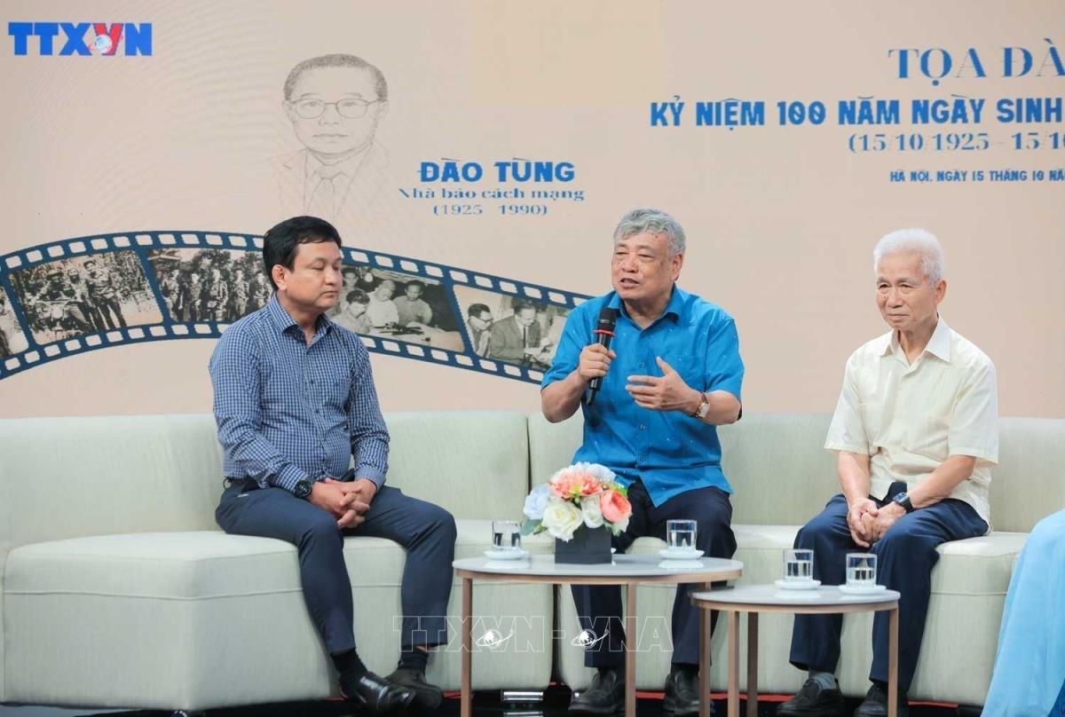 Hà Nội (TTXVN 15/10/2025) Chiều 15/10/2025, tại Hà Nội, Thông tấn xã Việt Nam tổ chức Toạ đàm “Kỷ niệm 100 năm Ngày sinh nhà báo Đào Tùng (15/10/1925 - 15/10/2025)” - Nhà báo cách mạng (1925 -1990) với chủ đề “Người truyền lửa”. Chương trình được tổ chức trực tiếp và trực tuyến tại 3 điểm cầu với sự tham gia đông đảo của các lãnh đạo, nhà báo TTXVN nhằm tri ân, tưởng nhớ về vai trò của nhà báo Đào Tùng - Tổng Giám đốc Thông tấn xã Việt Nam (5/1966 - 9/1990), Phó Chủ tịch kiêm Tổng Thư ký Hội nhà báo Việt Nam (1983 - 1989), Phó Chủ tịch Tổ chức quốc tế các nhà báo (OIJ), Ủy viên Ủy ban Trung ương Mặt trận Tổ quốc Việt Nam, Phó Chủ nhiệm Ủy ban Đối ngoại Quốc hội: Khóa VIII, Phó Chủ tịch Hội hữu nghị Việt Nam - Campuchia, Đại biểu Quốc hội khóa VIII.